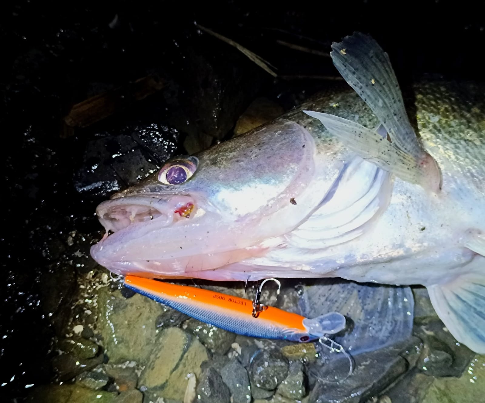 Ну как показал мой опыт рыбалки, для ловли судака ночью с берега лучше всего подходят воблера от 70 мм до 110 мм. Поэтому лучше брать «золотую середину». Это один из доводов в пользу TsuYoki Lector, так как длина этого воблера составляет 90 мм. В таком размере приманка получается максимально универсальной – ее активно атакует судак ночью (ну и в сумерках), ее не боится голавль, крупный окунь тоже не пройдет мимо, ну а щуке вообще все равно что и где «есть». Следующий параметр, который интересует – это заглубление. Тут TsuYoki Lector немного недотягивает до «моего идеала». Заглубление воблера колеблется в диапазоне от 0,5м до 0,8м. Вроде мало, но, если ловить на тонком шнуре, например, #0.6РЕ, то загнать можно воблерок на глубину до 1,1-1,2 м.