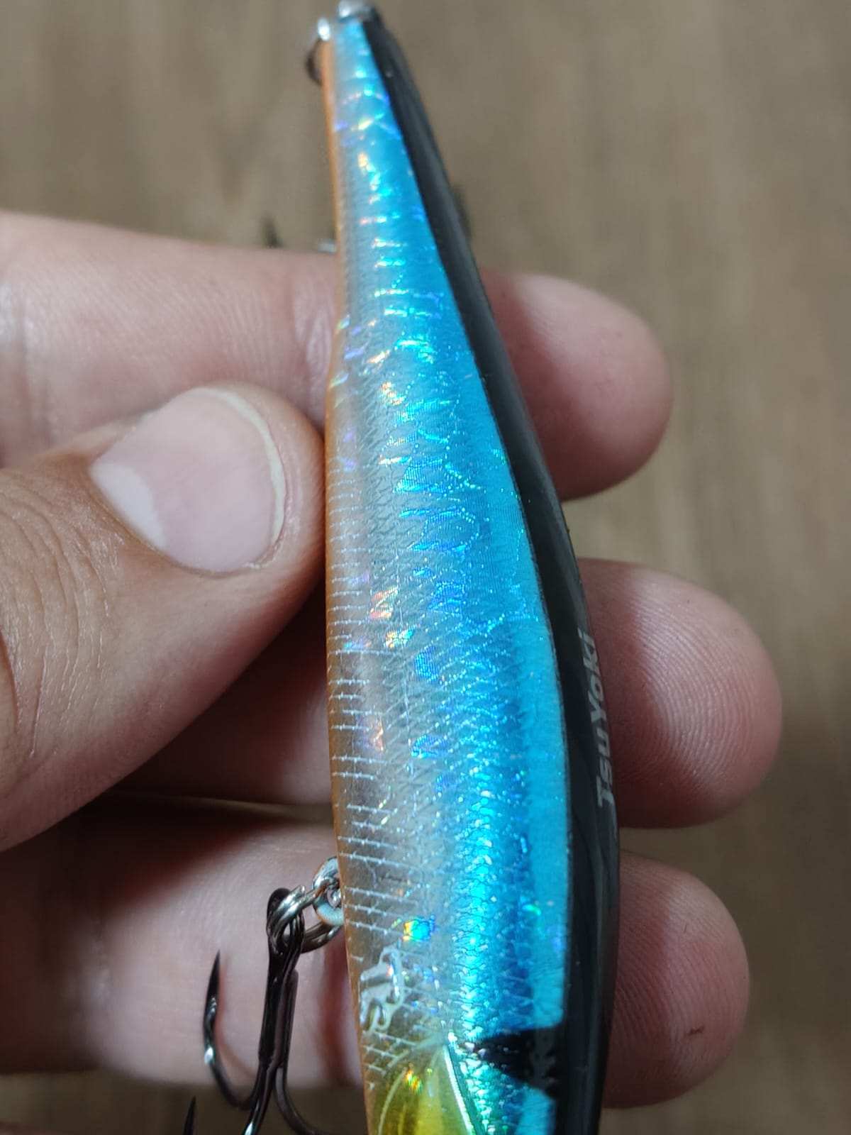 В самом начале я немного говорил об образе воблера, его плавности и аккуратности. Ну а теперь настало время чуточку более расширенно обсудить внешний вид приманки. Как и большинство приманок от TsuYoki наш «Лектор» обладает весьма высокой проработкой и детализацией тела. Тут имеется все, присущее дорогим воблерам – чешуя, рисунок на жаберных крышках, очертания пасти, объемные переливающиеся глаза. Причем все это выполнено на достаточно высоком уровне, что будет очень непривычно видеть тем, кто не знаком с производителем и его продукцией. Мол как так, такой дешевый и так хорошо сделан. Однако на боку, у самой головы есть даже «фирменное клеймо» в виде двух букв «TS». Однако есть и довольно занимательный, я бы сказал забавный момент. Я уже привык к тому, что палитра цветовых решений у TsuYoki практически безгранична, однако TsuYoki Lector не согласен с этим. В активе воблера около 40 цветов, что намного меньше, чем у того же TsuYoki Graceful, который также уступает в цветовом разнообразии другим моделям. Однако 4 десятка — это не мало! Тут есть все самые популярные и востребованные цвета и цветовые решения – кислота, натуралка, глянец, мат, насыщенные и полупрозрачные. В общем, недовольных не будет!
