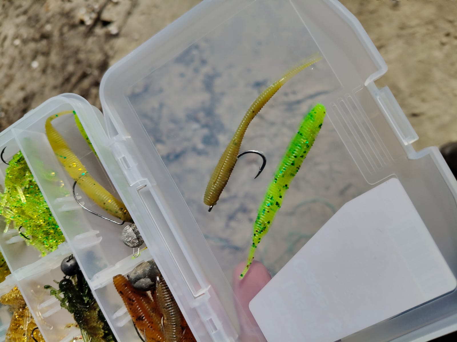 Однако если такой вариант с манипуляцией веса не подошел, не заинтересовал хищника, то всегда можно попробовать применить и медленное волочение приманки по дну. Груз поднимает облако пыли, а в нем виднеется ковыряющийся в грунте «червячок». Такая легкая и лакомая добыча не оставит без внимания ни одного хищника. А вот при данной подаче приманки, в отличии от предыдущей, паузы – дело выбора. Я если их делаю, то редко и непродолжительными, так как и сама проводка достаточно медленная и спокойная. Так что в принципе можно пахать дно без остановок. Но для этого Kosadaka Sota Worm лучше всего использовать в варианте джиг-риг – меньше вероятность подобрать мусор со дна, да и шанс «засадить» приманку значительно снижается.