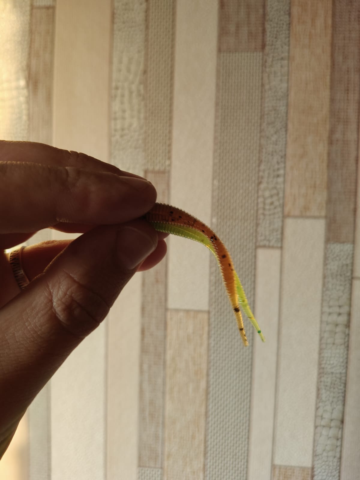На сей раз буду говорить о Kosadaka Sota Worm. Что же это такое? Честно говоря, мне эта приманка напоминает какого-то червя. Нет, я бы даже сказал пиявку. Ну а если классифицировать это чудо, то это самая что ни на есть пассивная приманка, которая напрочь лишена какой бы то ни было собственной игры, даже намеков на нее нет. Ну и с чего бы взяться этой самой игре. Просто посмотрите на строение приманки – продолговатый червячок, который делится даже визуально на 2 части. Первая часть, от головы и до середины, обладает цилиндрической формой, да и в принципе выглядит объемно. А вот вторая часть, от середины и до конца, плоская. Ну и финальным завершением приманки является небольшой усик или отросток в самом конце приманки. Как видите сами – ничего необычного, ничего сверхъестественного, ну и никаких «возбудителей спокойствия» нет.