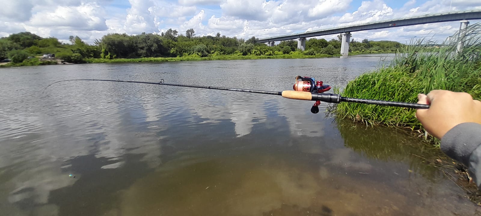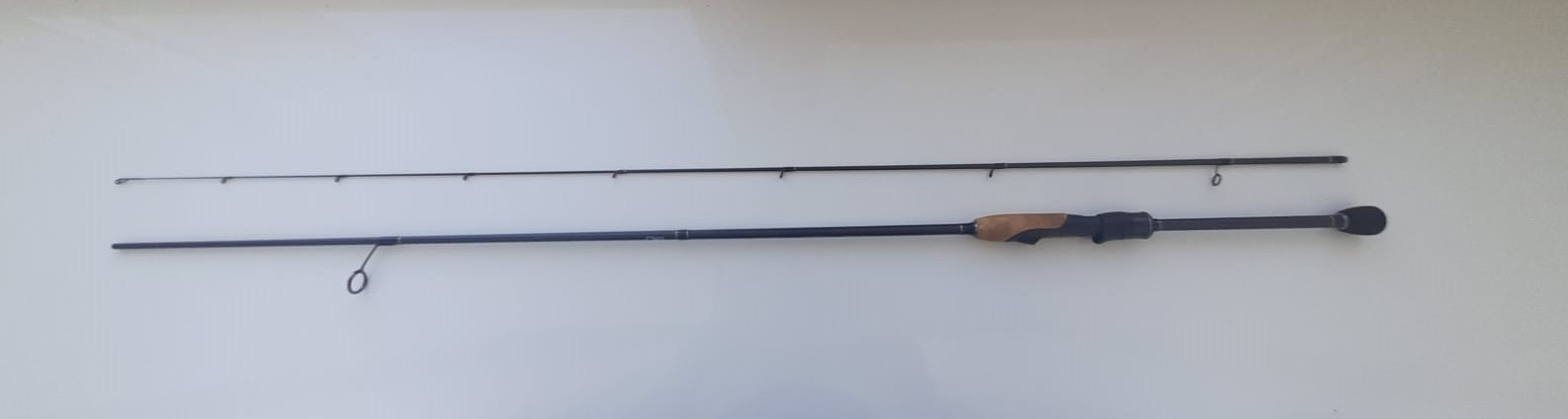 Первое впечатление о спиннинге достаточно хорошее. Он был очень лёгким для меня (человека, который всегда ловил лайтом). Весит удочка примерно 80 грамм. Потряся его (тем самым, проверив строй), я понял, что он регуляр-фаст строя. Пробковая вставка на рукояти (упомянутая выше) лично для меня является плюсом, так как в жаркое время года она не нагревается, а в холодное - не очень охлаждается. Также рукоять весьма удобная и легко лежит в руке. Гайка крепления катушки - нижняя. Вершинка спиннинга - тубулярная. Для меня это плюс, так как я люблю более жёсткие удилища.