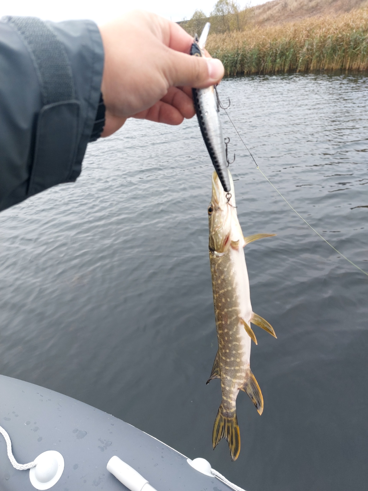Силикон. Ловил силиконовыми приманками от 4,5 до 6,5 дюймов. Кто-то скажет, что не такая уж и крупная резина, но для рыбалки на некрупных реках центральной полосы России вполне себе биг бейты. Естественно, что про классические джиговые проводки речь не пойдет. В основном равномерка в разных слоях воды, иногда с касанием дна. Вес груза в большинстве случаев не превышал 10 граммов. При среднем весе приманки 20 и груза 4-6 граммов получается довольно далеко забрасывать и контролировать проводку. Естественно, что не все приманки передают свои колебания в бланк удилища, а через него в руку рыболова, но приманки 6-6,5 дюймов уже начинают ощущаться при проводке. Приманку 4 дюйма с чебурашкой 5 граммов удавалось забрасывать в лучшем случае метров двадцать, а то и меньше. Все-таки, чтобы далеко кидать, надо грузить палку.