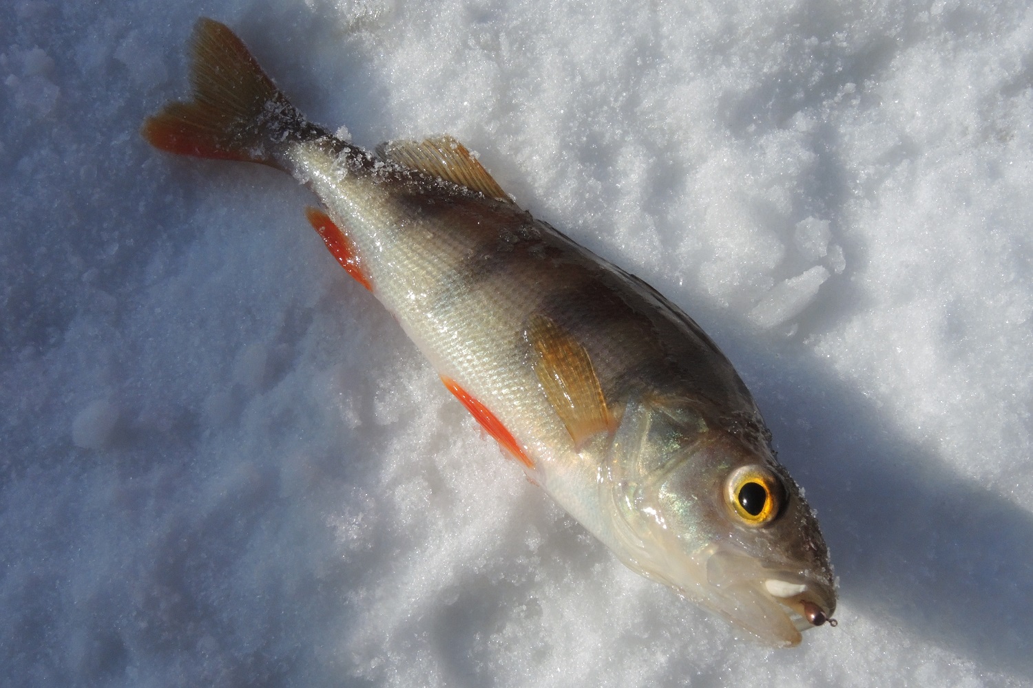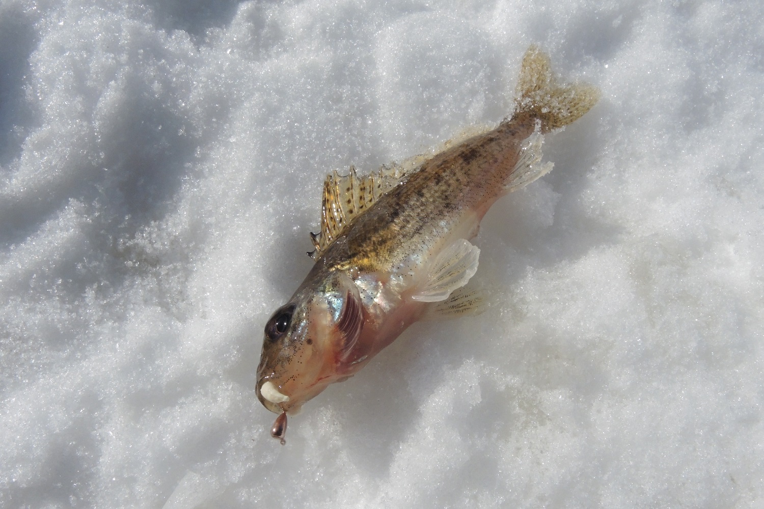 Это и окуни, которые ввиду внутренней конкуренции иной раз хватают на перебой, только успевай опускать.
