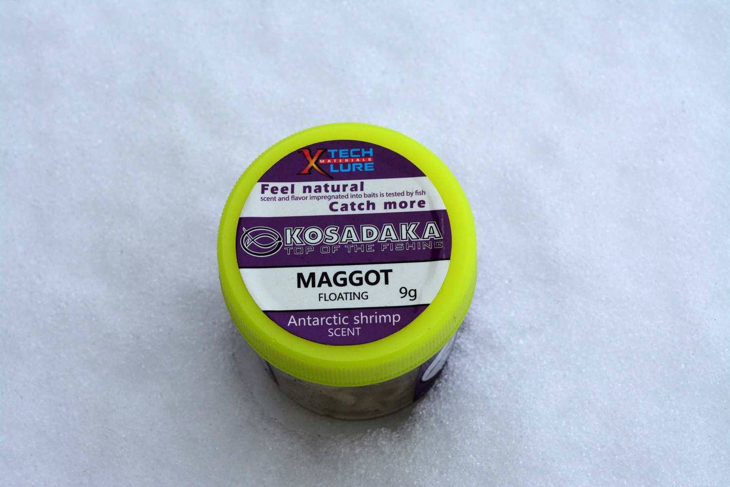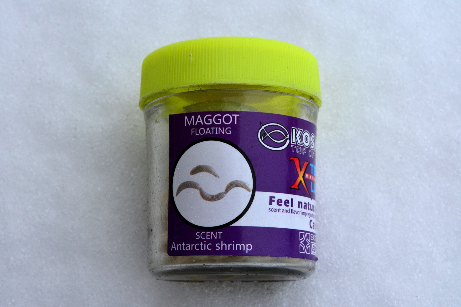 На крышке можно видеть слово «MAGGOT». С английского языка это переводится как «личинка». То есть, это более общее название. Но в каталоге есть силикон Kosadaka Maggot, который идет в другой баночке и имеет разнообразие расцветок, и еще ряд отличий. В данном же случае цвет конкретно белый, то есть имитируется конкретно опарыша.