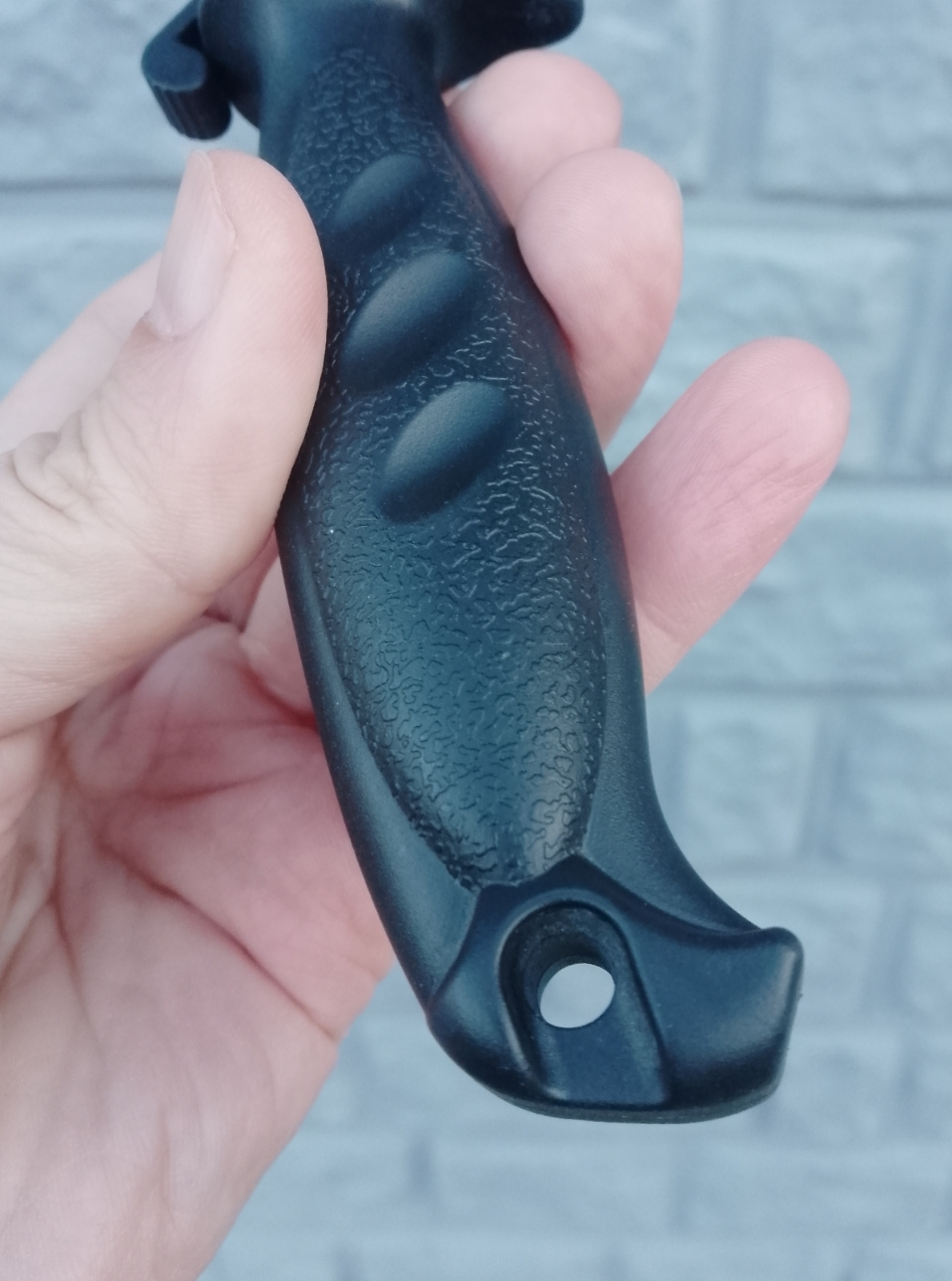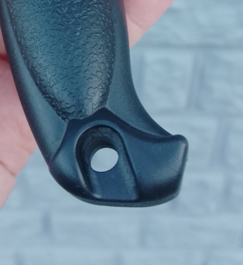 Чтобы нож можно было подвесить, ну мало ли где-то, чтобы он был на виду, в рукоятке имеется отверстие. Привязал петлю из верёвки - и, пожалуйста, хоть на кухне нож вешай на крючок, хоть на природе на сучок или гвоздик.