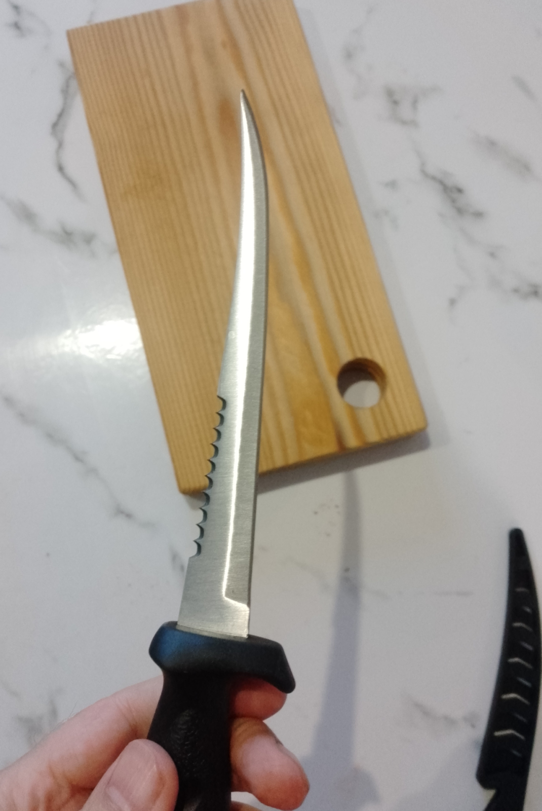 Да, кстати, ещё один вариант использования серейтора - это перепиливание костей крупной рыбы, когда вы её чистите и готовите к разделке. Всё весьма быстро и аккуратно получается.