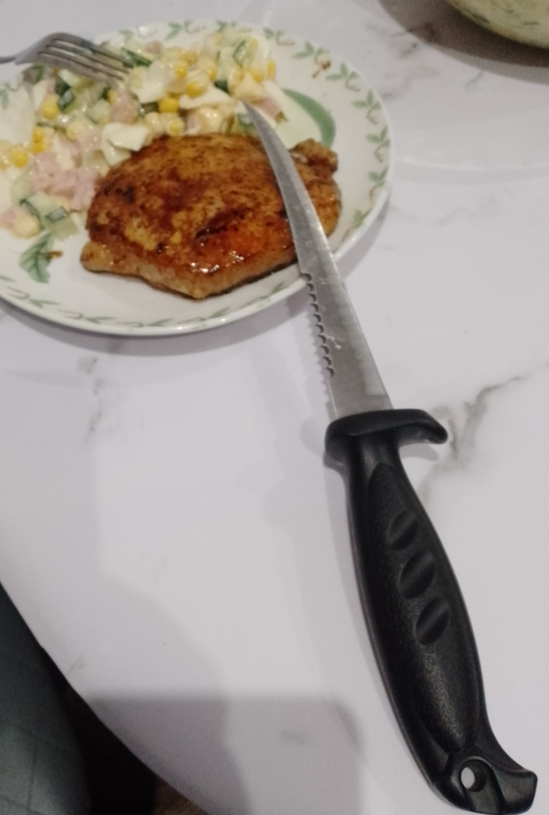 У кого-то может возникнуть вопрос, а для чего он, серейтор, вообще нужен? Лично меня эта "пила" выручает, когда нужно, например, нарезать мороженое мясо или сало. Просто ножом их в таком состоянии не всегда победишь, а вот с помощью серейтора - запросто.