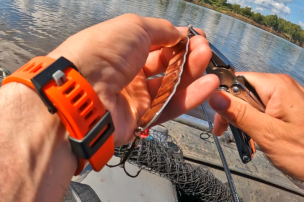 Возможно даже есть смысл поставить что-то поменьше, однако я ловлю блеснами в заводском исполнении и каких-то проблем при этом ещё не испытал.
