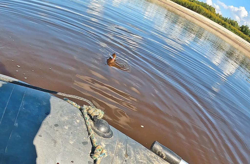 Минимальная глубина для проводки блёсен, на мой взгляд, составляет около 30 сантиметров. Если быстро вести её равномерной проводкой, то вполне можно ловить.