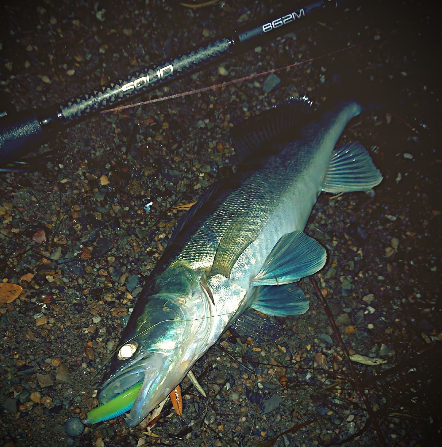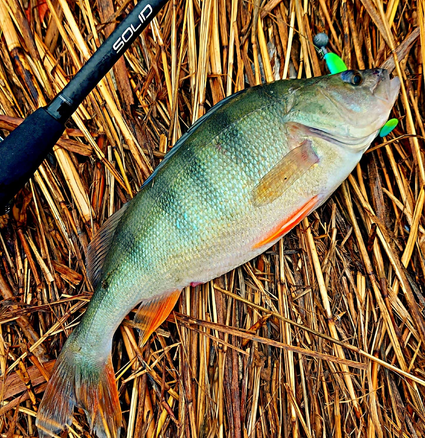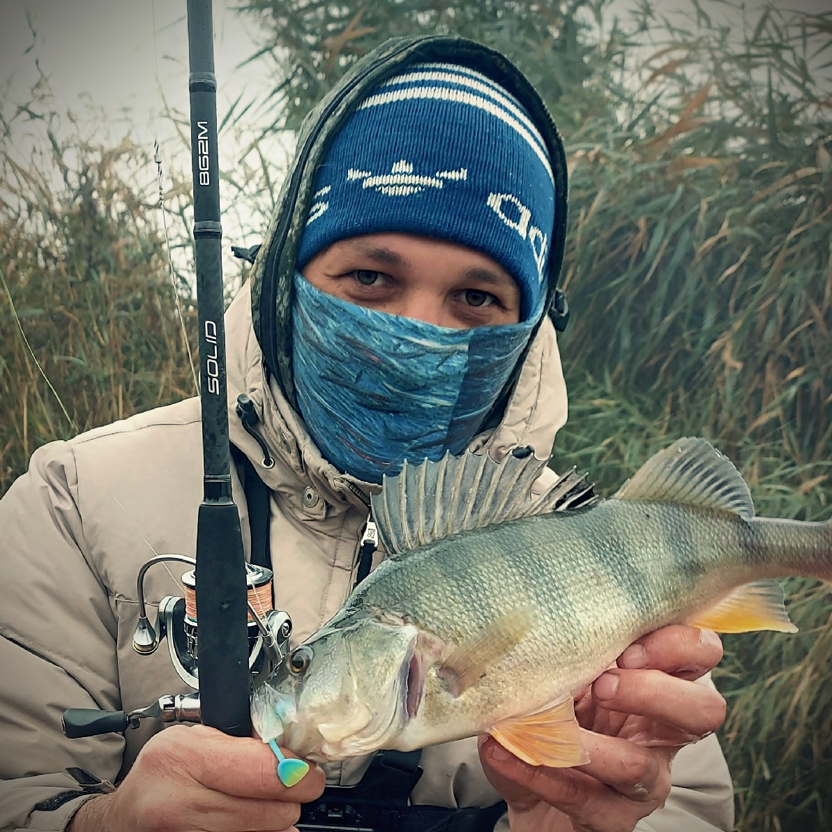 Вываживание. Изначально, на потрях палочка показалась достаточно жёсткой, что может вызывать проблемы с "доставкой" окуней на берег. На практике же спиннинг порадовал работой бланка. Нагрузка распределяется равномерно, разумеется, в зависимости от веса рыбы. Кончик приглушал резкие рывки мелких окуней, а начиная примерно от 200-граммовых рыб включался весь бланк. С подсечкой тоже никаких проблем— судачью пасть Solid пробивает уверенно!
