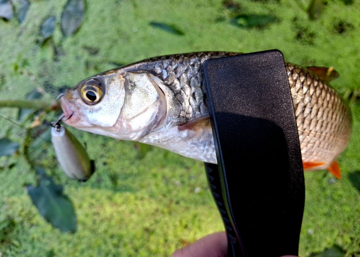 Рыба фиксируется хорошо, даже сильный голавль не в состоянии выпрыгнуть из щипцов. Но есть обратная сторона медали: рыба всё же пытается трепыхаться и лишается своей чешуи в месте контакта с щипцами. Поэтому нужно выбирать здравую силу сжатия, чтобы и рыба не дергалась, и травм она не получила. Легче всего работать с окунем: тот и вырывается меньше, и броню свою не теряет.
