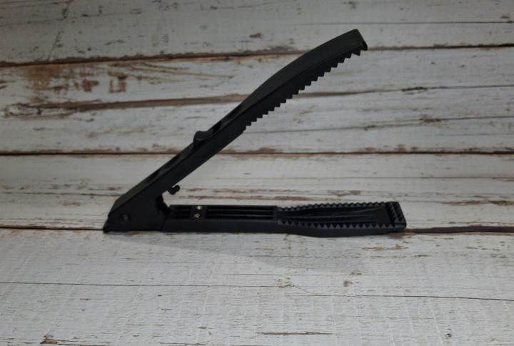 Что представляет собой фиксатор? Это некий бегунок снаружи, который на внутренней стороне зажима имеет крючок. Соответственно зажим имеет 2 положения- открытое и закрытое.