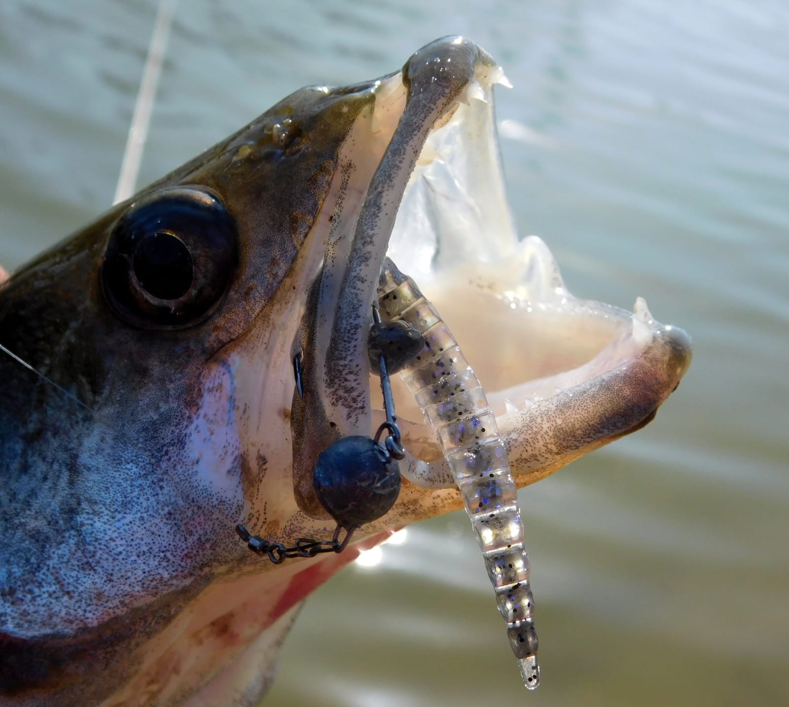 Ну а теперь пришло время поговорить о том, кого и в каком размере можно поймать на Keitech Custom Leech. Ну давайте сразу оговорим размер. Вот прям чтоб из трофеев – это сазанчик в районе 3 килограммов. Да и то, это не совсем та рыба, которую ты ловишь и ждешь, но тем не менее. В остальных случаях, из крупного только окунь. Не знаю почему, но уж очень привлекает крупных «матросиков» Keitech Custom Leech. В остальных же случаях это привычные обитатели – щучки и судачки, обычная мерная рыба (до 1 кг) или совсем «игрушечная». Даже «случайных» трофеев среди щук и судаков на Keitech Custom Leech у меня не случалось.