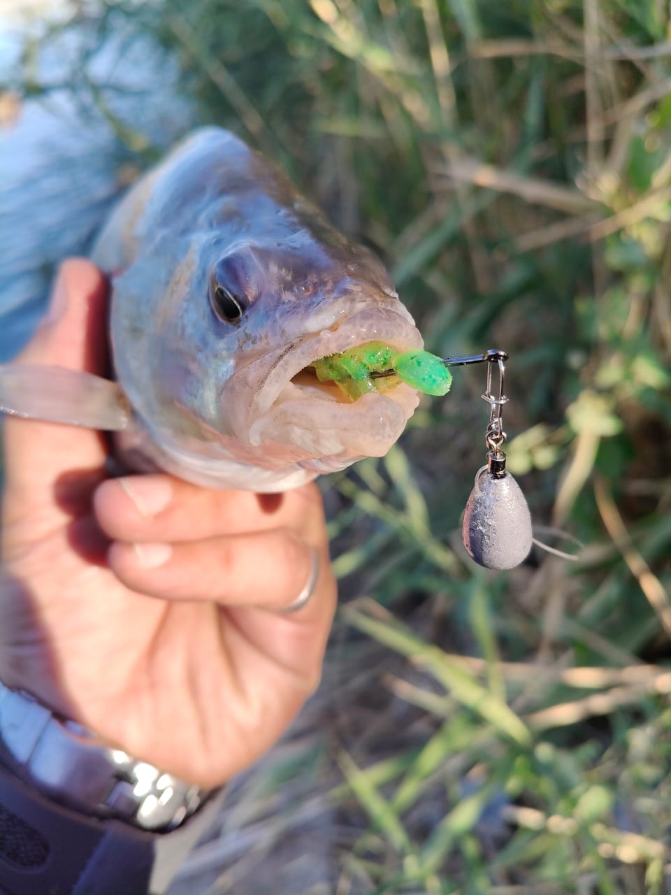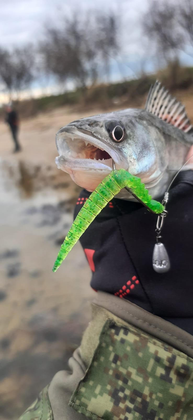 Но есть миф, что пассивными приманками в перегруз не половишь. Но только не с Keitech Custom Leech. Неоднократно ловлю в перегруз с этой приманкой. Но тут чаще всего использую монтаж джиг-риг. Суть в том, чтоб максимально далеко доставить приманку. Дальше – медленная равномерная проводка (волочение по дну). От такого постоянного контакта, да еще и плюс подскоках на неровностях, приманка будет играть сама. Да, не так ярко, как при принудительной анимации, но все же небольшие покачивания, помахивания будут. А для пассивной и осторожной рыбы такое очень даже подходит, как показала практика. Да и активная рыба тоже не против полакомиться такой соблазнительной и медленной добычей.