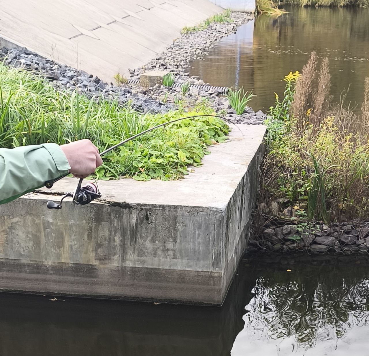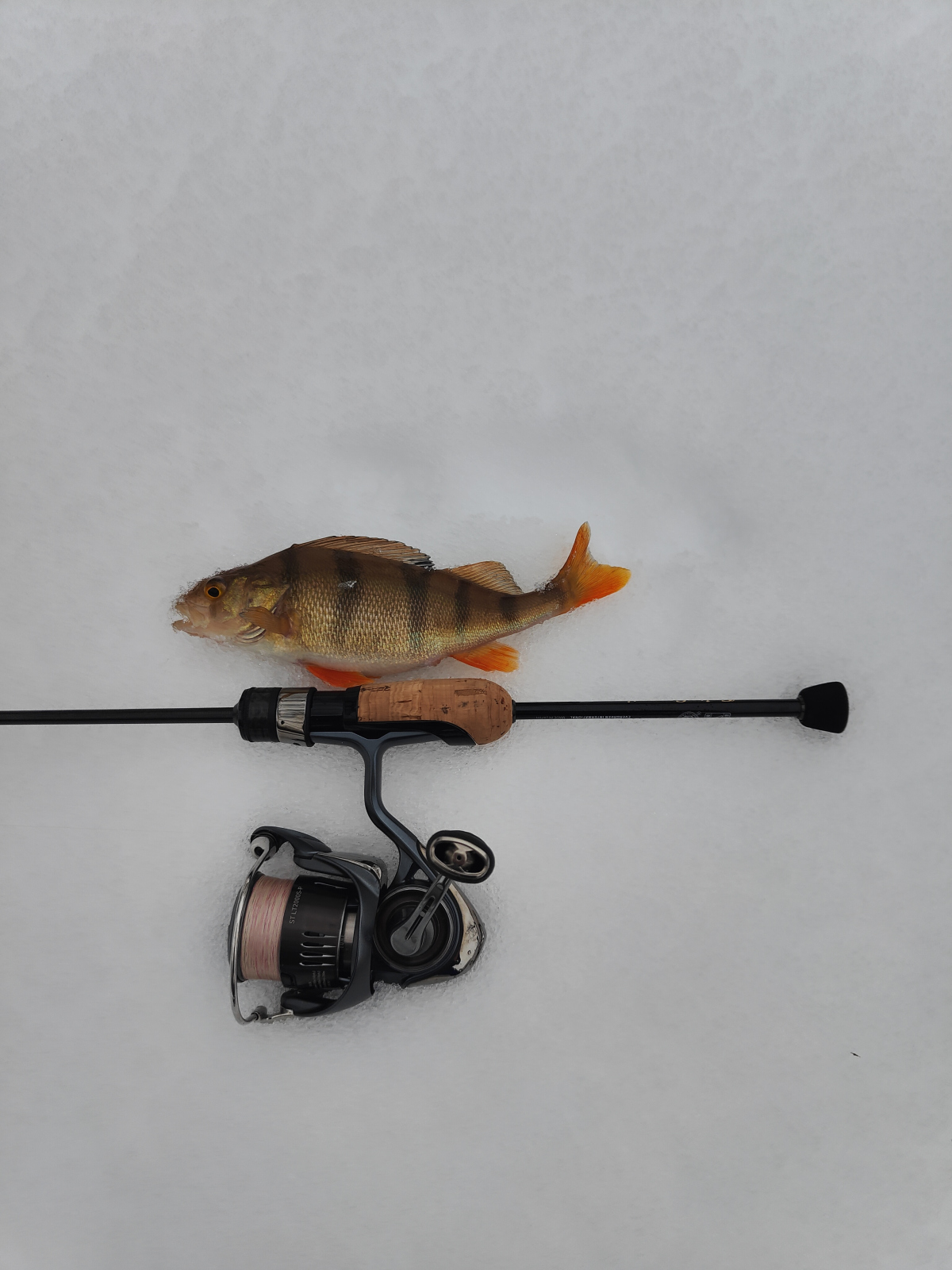 Итак, перейдем к рыбалке. Ловить на evergreen sprs twiggy 56 начал с веса 0,75 грамма и дюймовой танты. В тихую погоду с этим весом можно достаточно комфортно лловить. Спиннинг уже начинает показывать падение грузика на дно по вершинке. Да это происходит не всегда, тут много сопутствующих факторов как глубина в месте ловли, твердость дна и другие производные, но ловить с этого веса можно комфортно. При необходимости можно уменьшиться в весе и ещё ниже, но там не будет визуального контроля, но при это всё ещё можно будет контролировать приманку.