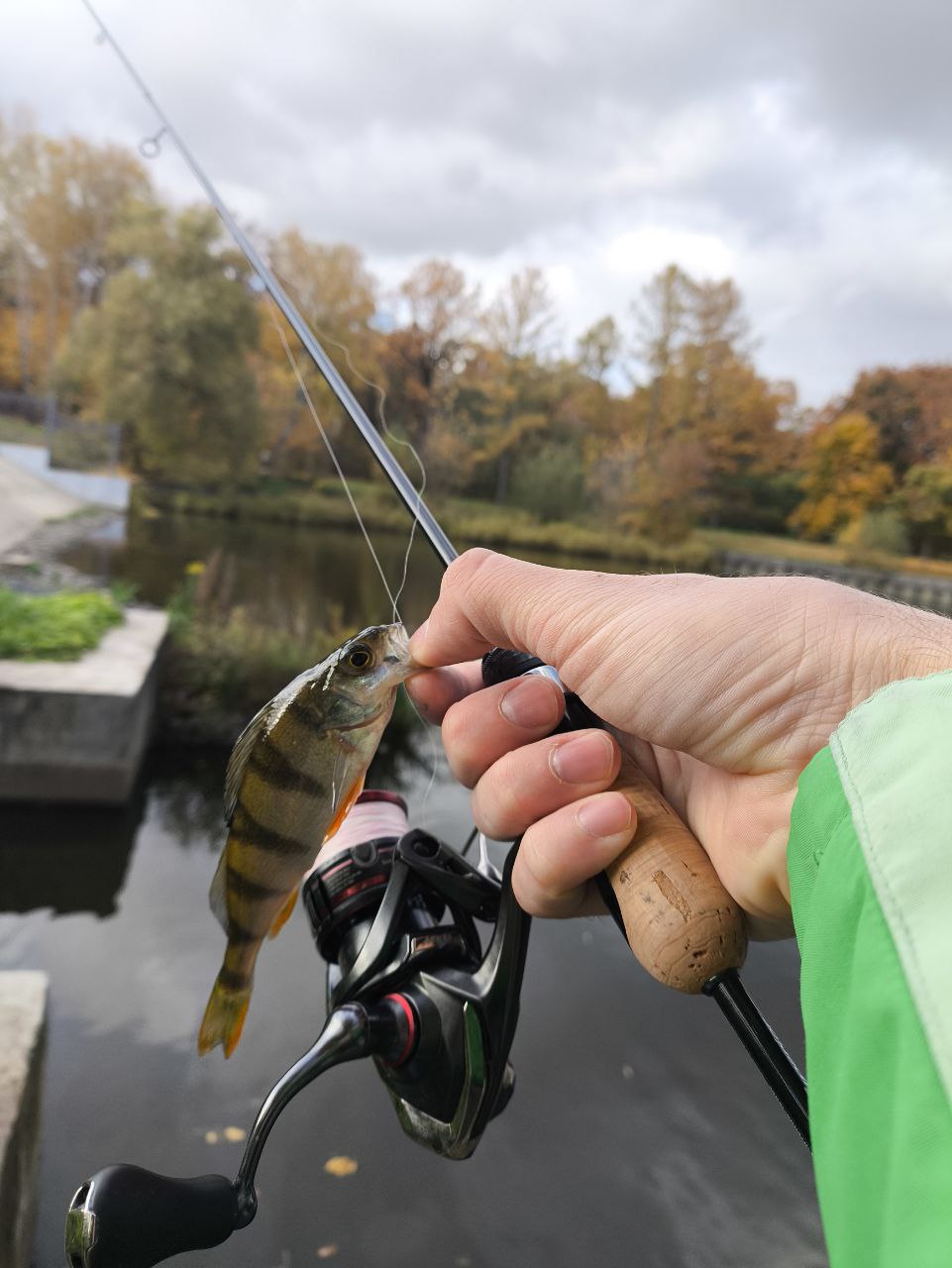 На мелком спортивном окунеevergreen superior sprs-56 xul twiggy уже начинает включаться большей частью бланка и неплохо прогружается, но при этом остаётся достаточно нервным на вываживании. При этом у спиннинга чувствуется запас мощности если влетит трофейный экземпляр.
