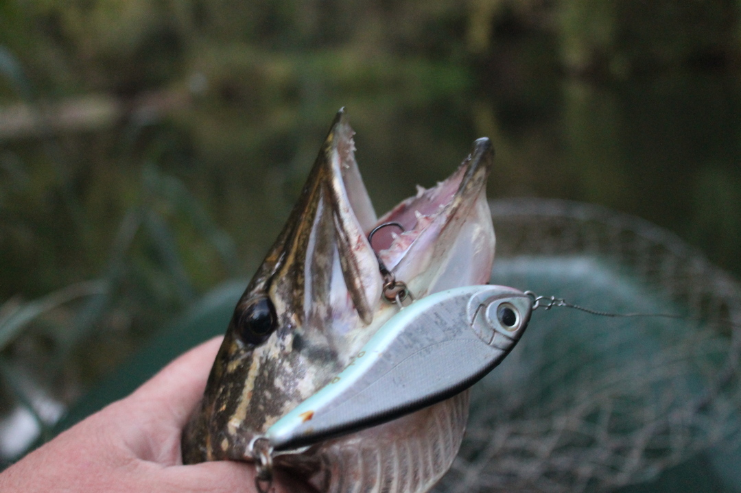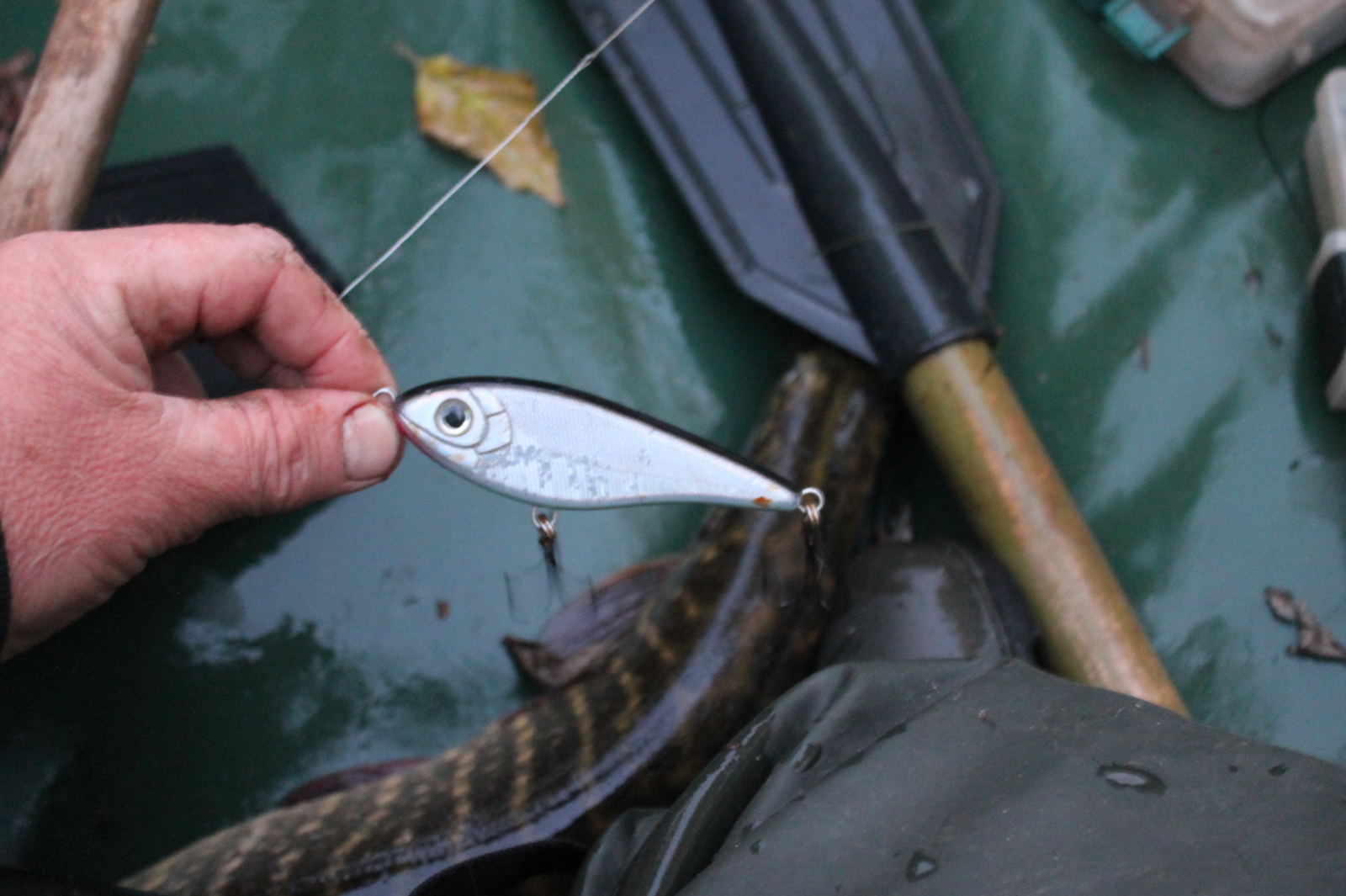 Ну и вообще, бывали моменты, когда щука покрупнее и поумнее реагировала именно на бликование Strike Pro Baby Buster.  Могу лишь опять уточнить, что такие моменты были при просветлении воды в реке.