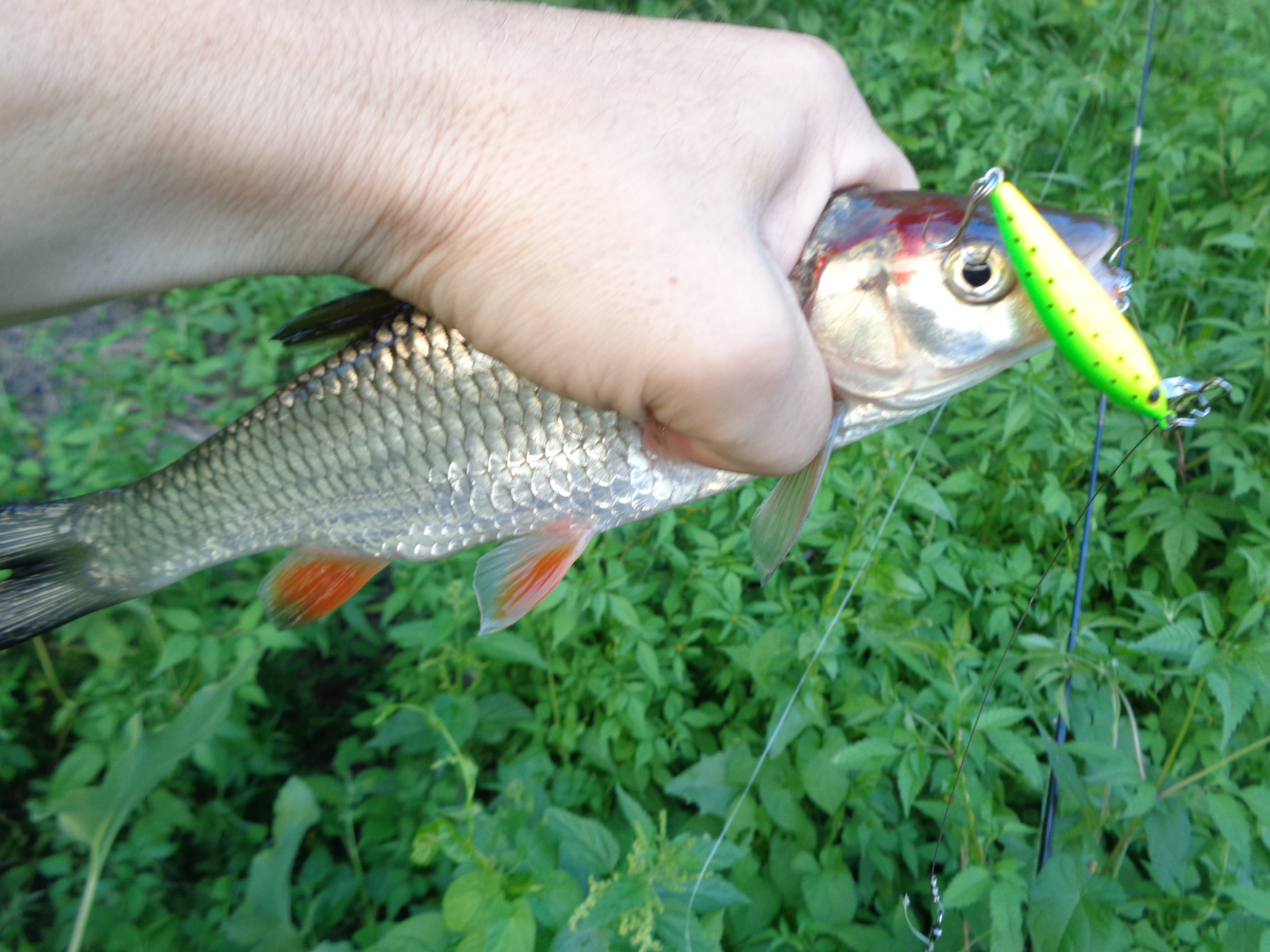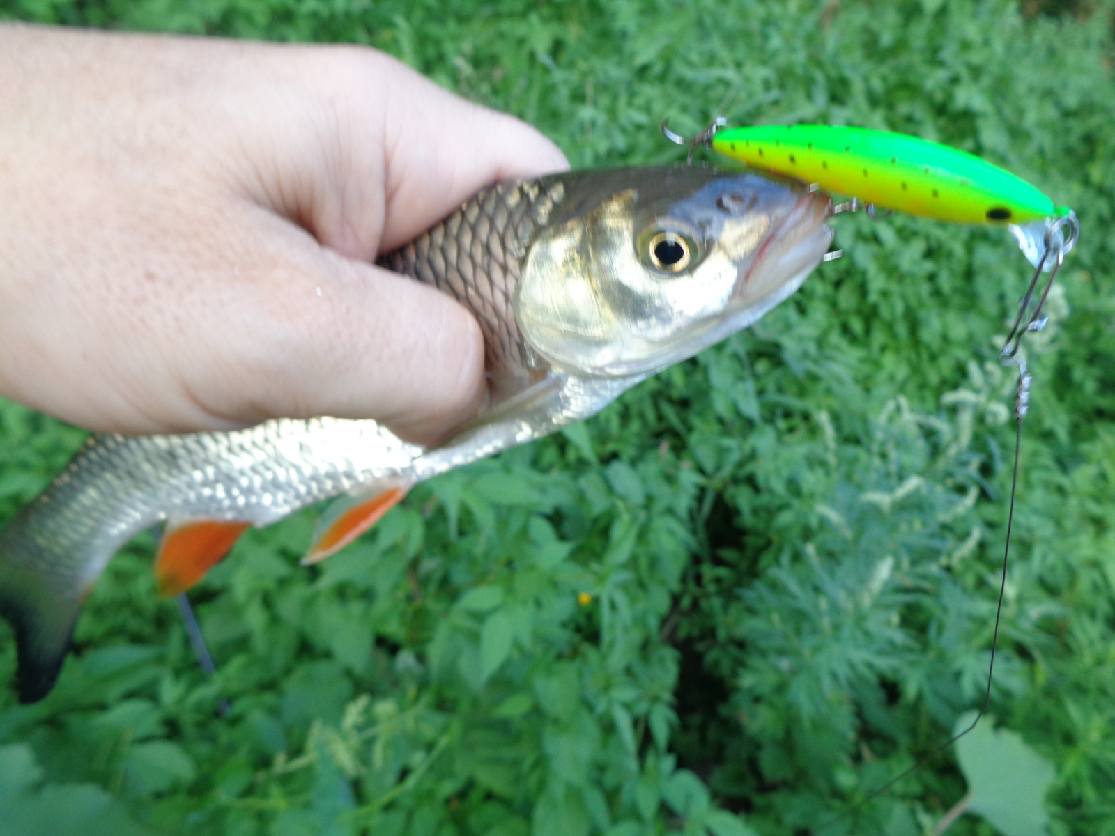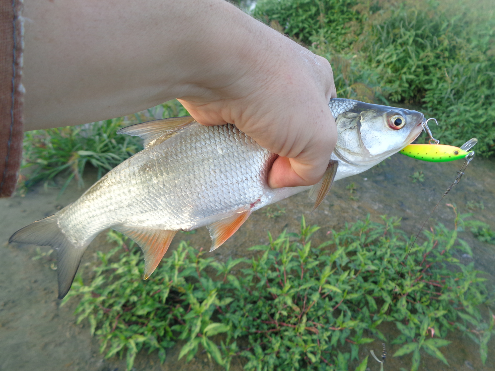 У меня был шанс дёрнуть зачётного жереха, но я его упустил. На одной из рыбалок неплохой жерех, весом в пределах от 1,3 до 1,8 подошёл очень близко, и я сделал попытку его поймать. Две атаки оказались не результативными, после которых я немного встал в ступор. Не знаю, сколько времени он продолжался, может минуту, может доли секунды, но я решил тогда сменить приманку, поскольку отчётливо понимал, что Luna 47 TR SP у меня не подготовлен к такой рыбе, крючки я на нём не менял, а они для жереха под двушку хлипкие.