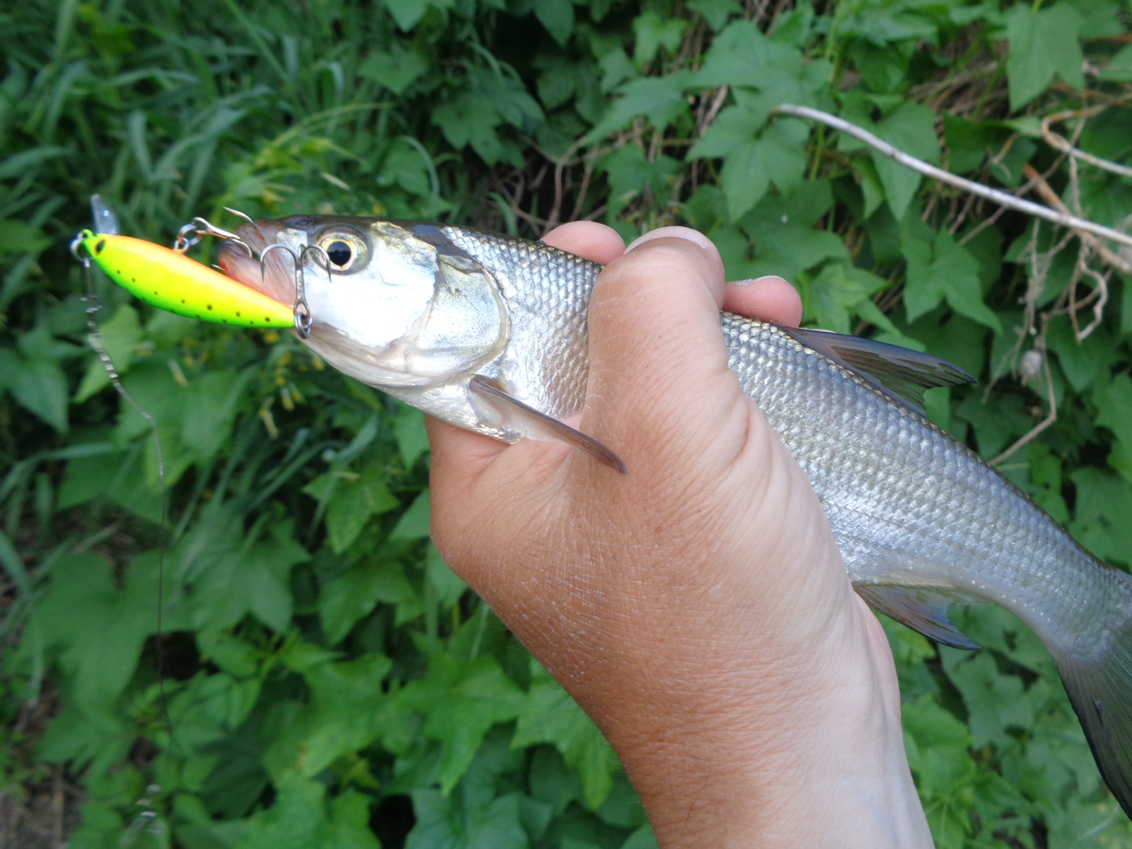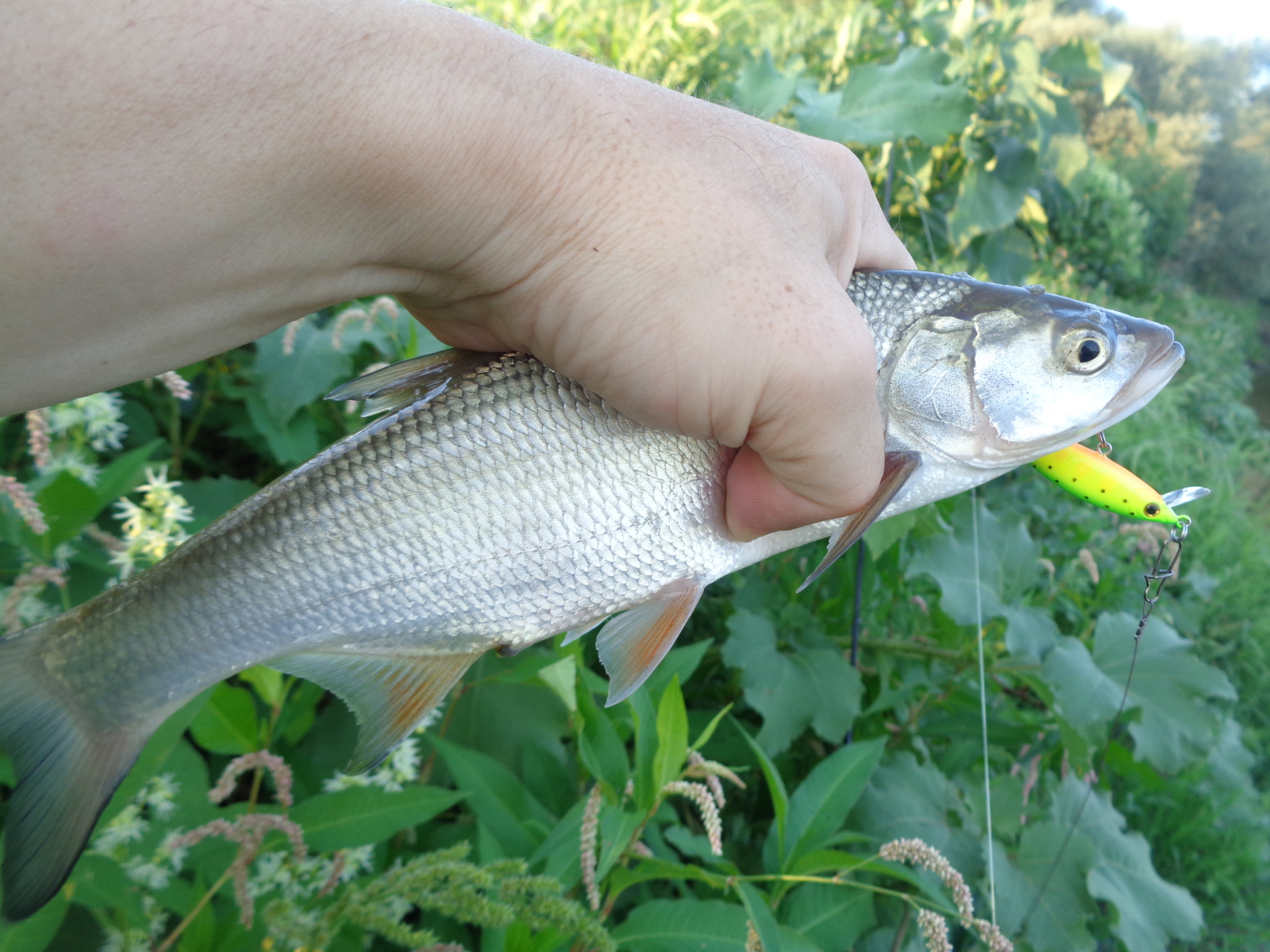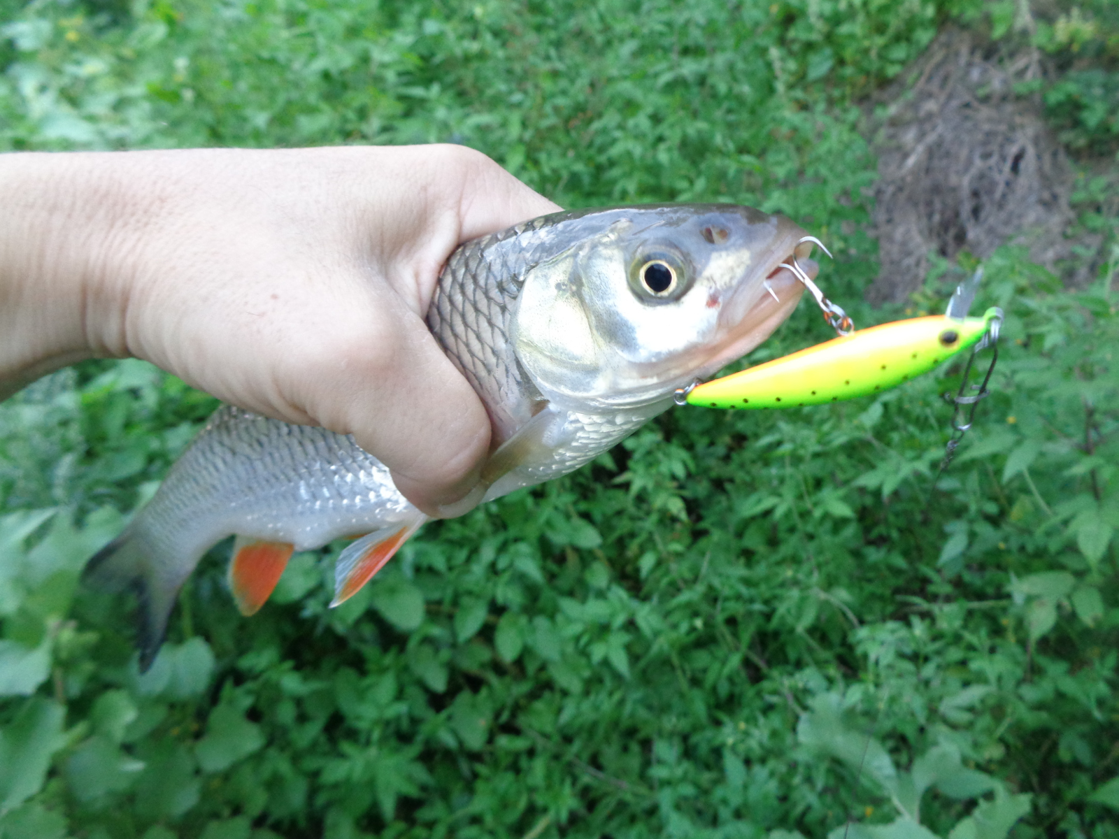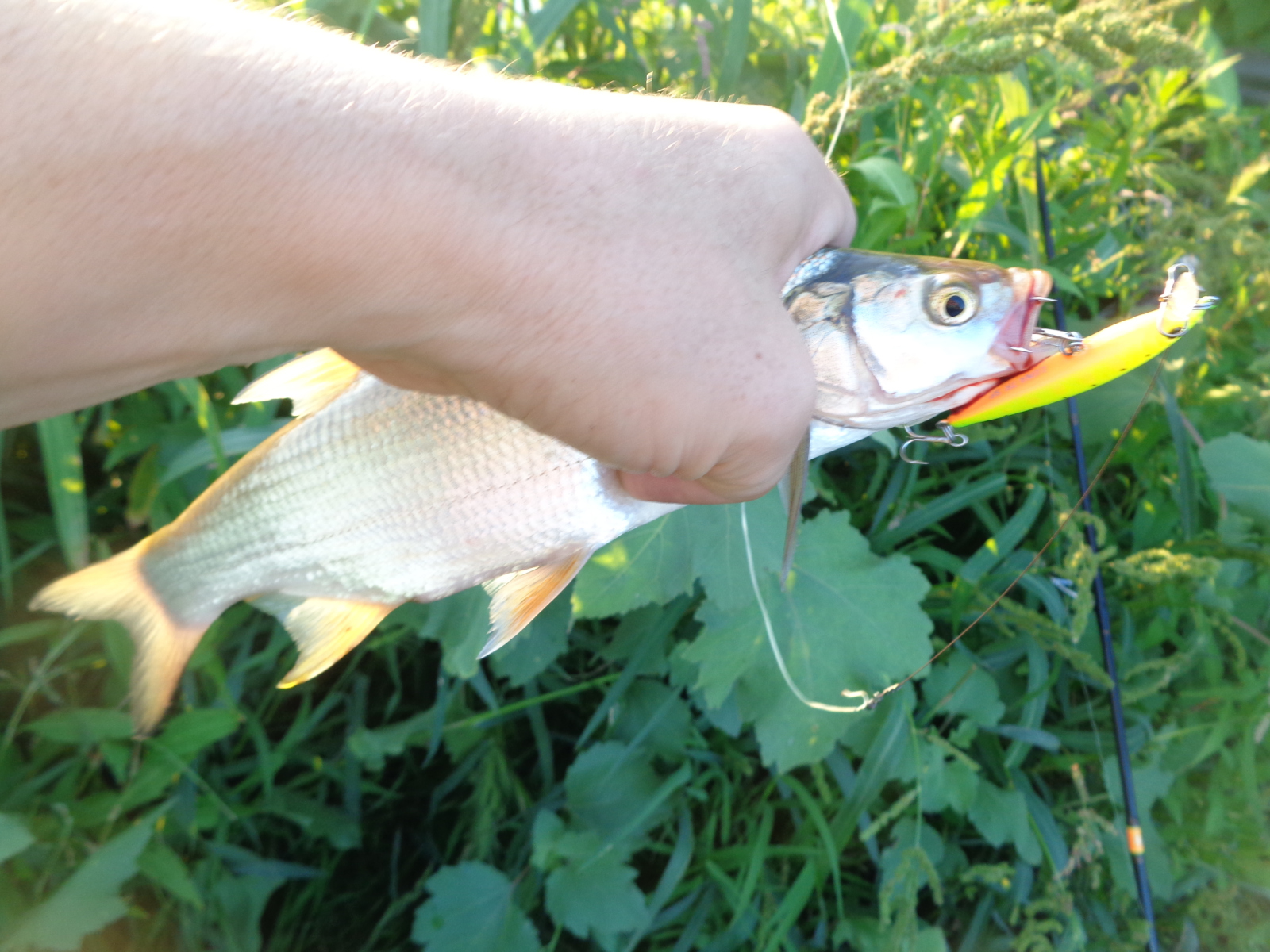 У меня был шанс дёрнуть зачётного жереха, но я его упустил. На одной из рыбалок неплохой жерех, весом в пределах от 1,3 до 1,8 подошёл очень близко, и я сделал попытку его поймать. Две атаки оказались не результативными, после которых я немного встал в ступор. Не знаю, сколько времени он продолжался, может минуту, может доли секунды, но я решил тогда сменить приманку, поскольку отчётливо понимал, что Luna 47 TR SP у меня не подготовлен к такой рыбе, крючки я на нём не менял, а они для жереха под двушку хлипкие.