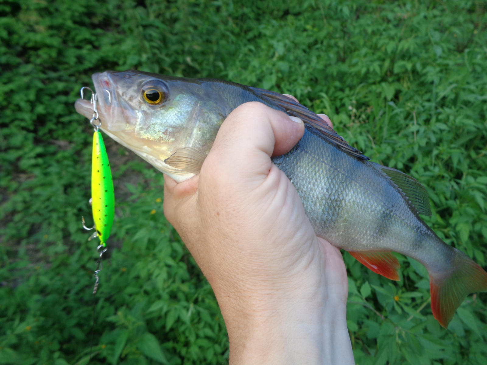 Причём, в этом сезоне в тех местах окуня почти не было, во всяком случае на любые мои воблеры он почти не влетал. А на Luna 47 TR SP пару экземпляров мне удалось дёрнуть. Оба окуня влетели, когда девайс шёл строго против струи в медленном равномерном темпе.