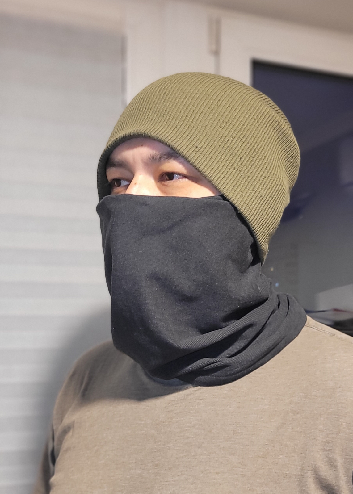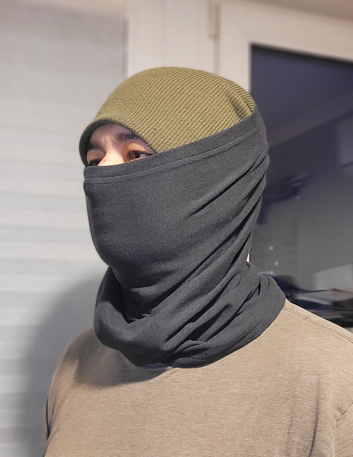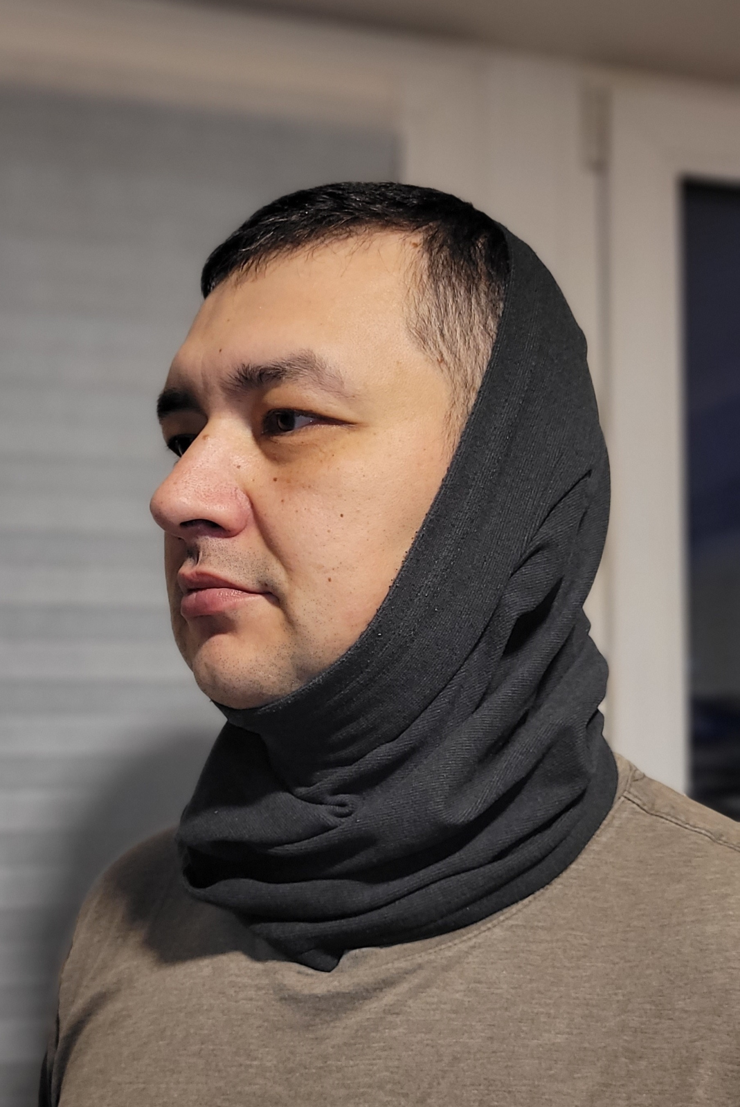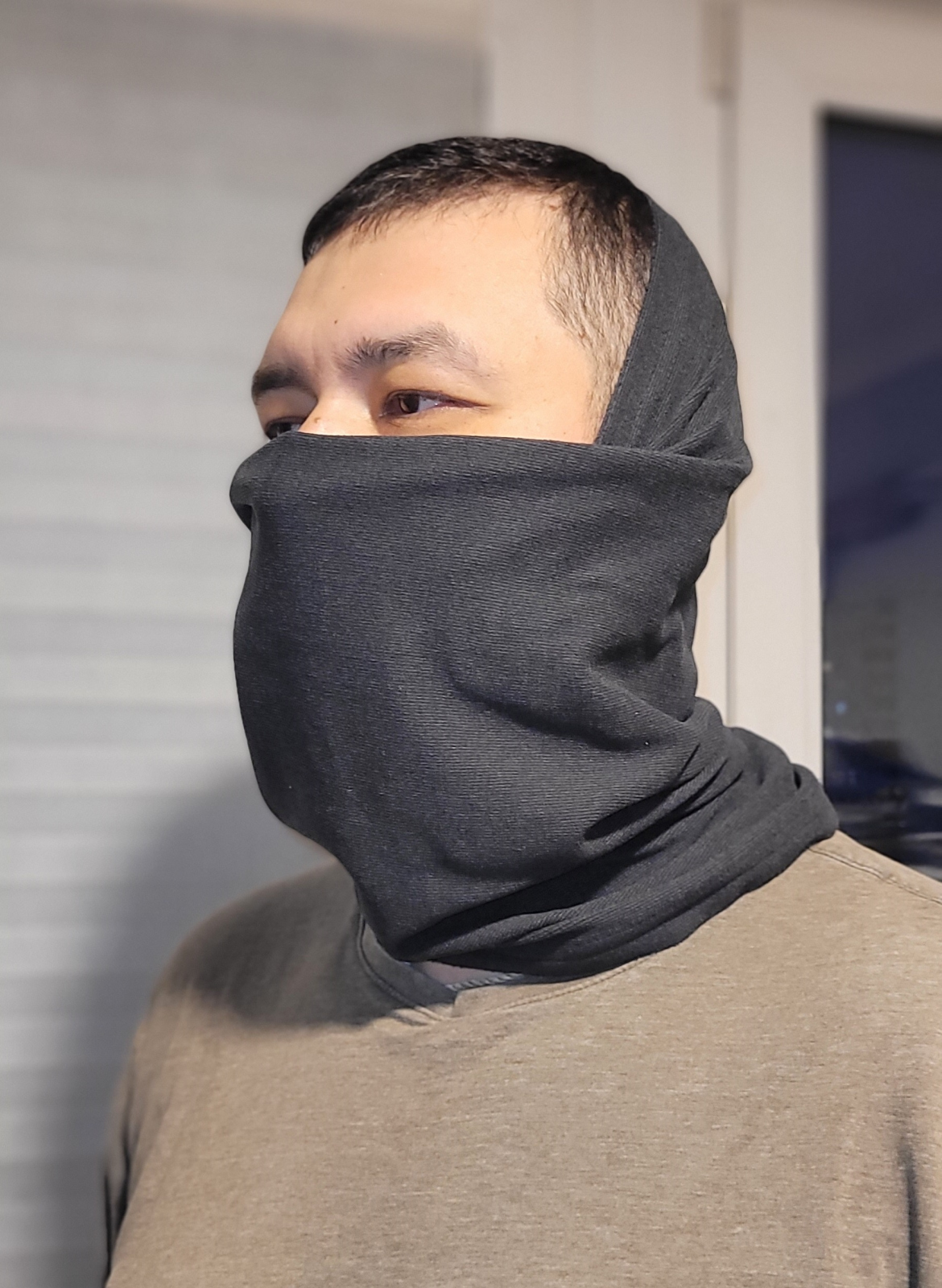 Одним словом, я был поражен тем, какую классную штуку я купил за совсем небольшие деньги. Что касается утилитарных моментов, то они следующие. Баф от Kosadaka имеет три шва: два на краях трубы, один вдоль. Швы по краям плоские. Они почти не ощущаются и уж точно не раздражают. Шов, проходящий вдоль, не ощущается совсем. Как я писал выше, косадаковский баф приятен и грубой коже лица, и менее грубой коже шеи. Поэтому нет такого положения, при котором было бы в нем некомфортно.