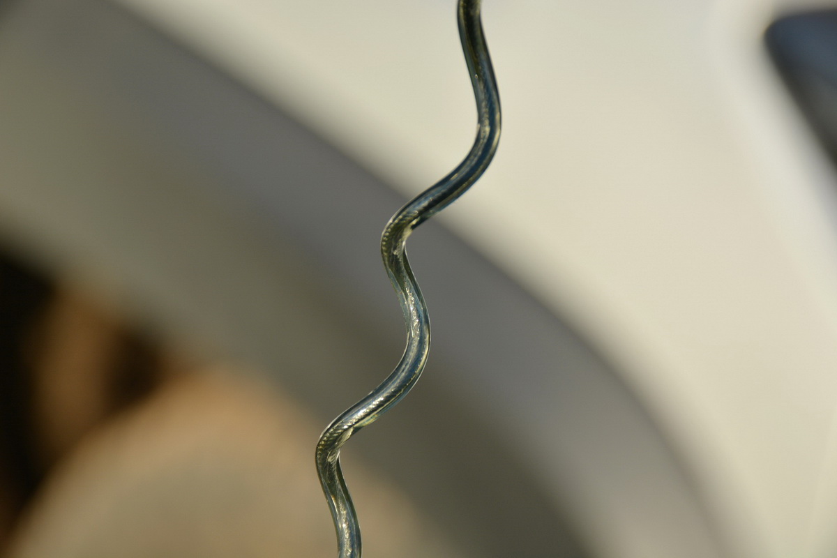 Крепежный усиленный шнур с карабинами Smith HD202 представляет собой свитый в спираль (наподобие телефонного кабеля) многожильный металлический тросик, который заключён в прозрачную зеленоватую оплётку из плотного полимерного материала.