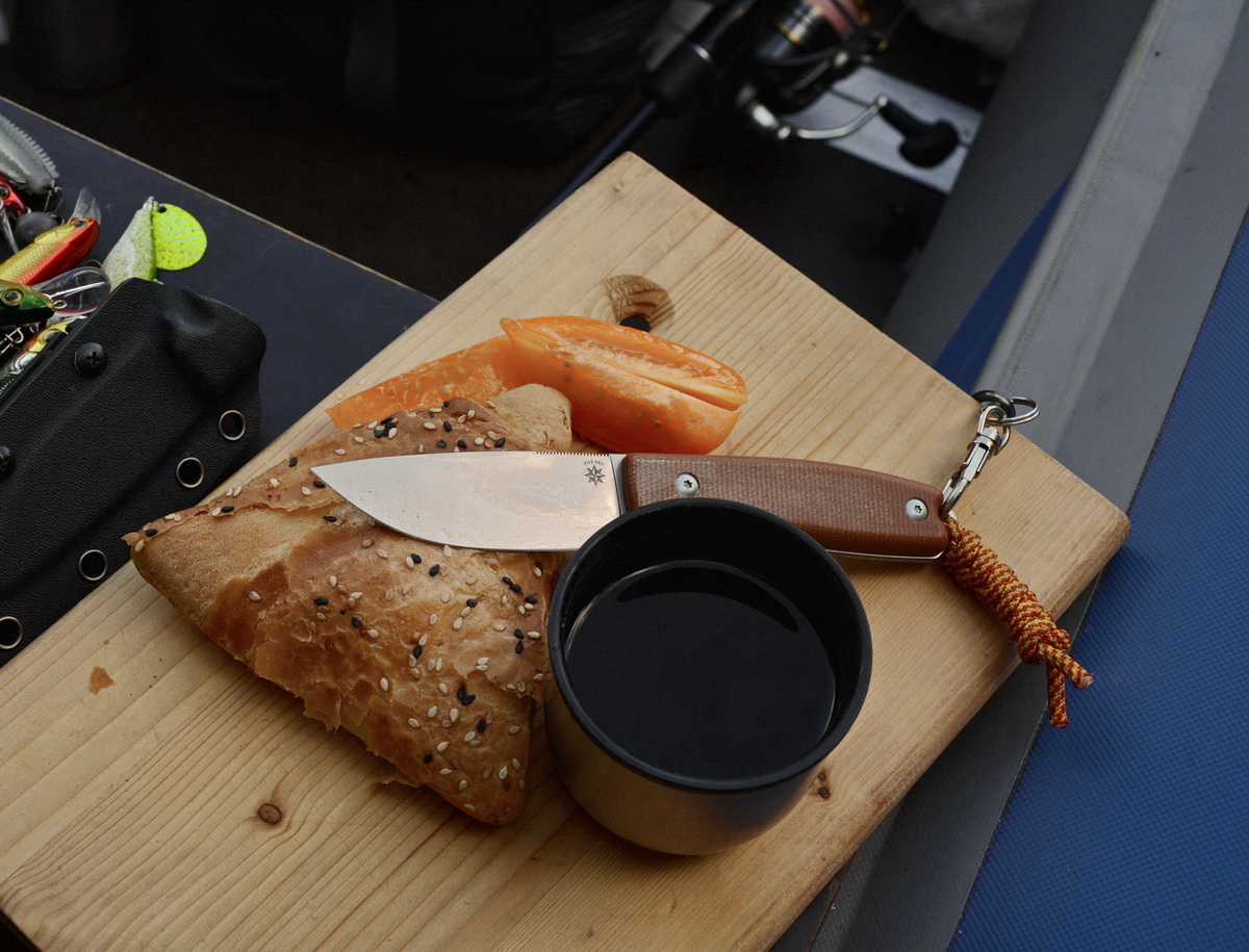 Перепробовав разные варианты использования этого девайса, и так и не найдя ему применения по прямому рыбацкому назначению в лодке: то не хватало длины, то на инструменте не было монтажного отверстия, то просто было не с руки им пользоваться, я приладился использовать этот шнур с ножами, имеющими на рукояти отверстие для темляка.