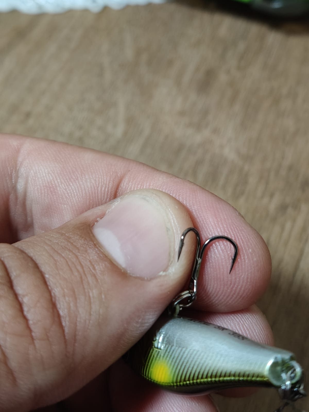 Хотя менять крючки на этих воблерах у меня ни разу необходимости не возникало. Я говорю про необходимость, а не про желание. Если вам нравятся одинарники, то лучше произвести замену дома – безопаснее и быстрее. Но это выбор каждого. Меня и оригинальные тройники устраивают. Несмотря на свою миниатюрность они обладают довольно высокой прочностью – не разгибаются и не ломаются. Ну и заточку свою сохраняют даже после контакта с камнями или зацепами, что не может не радовать. Они тонкие и острые, отлично засекают рыбу, а удержать помогает не менее острая бороздка стопор. Ну для понимания, как правило подсекаю я щуку или судака. А вот жереха, голавля, язя, окуня подсекать не приходится – острый крючок и жадность рыбы делают все сами.