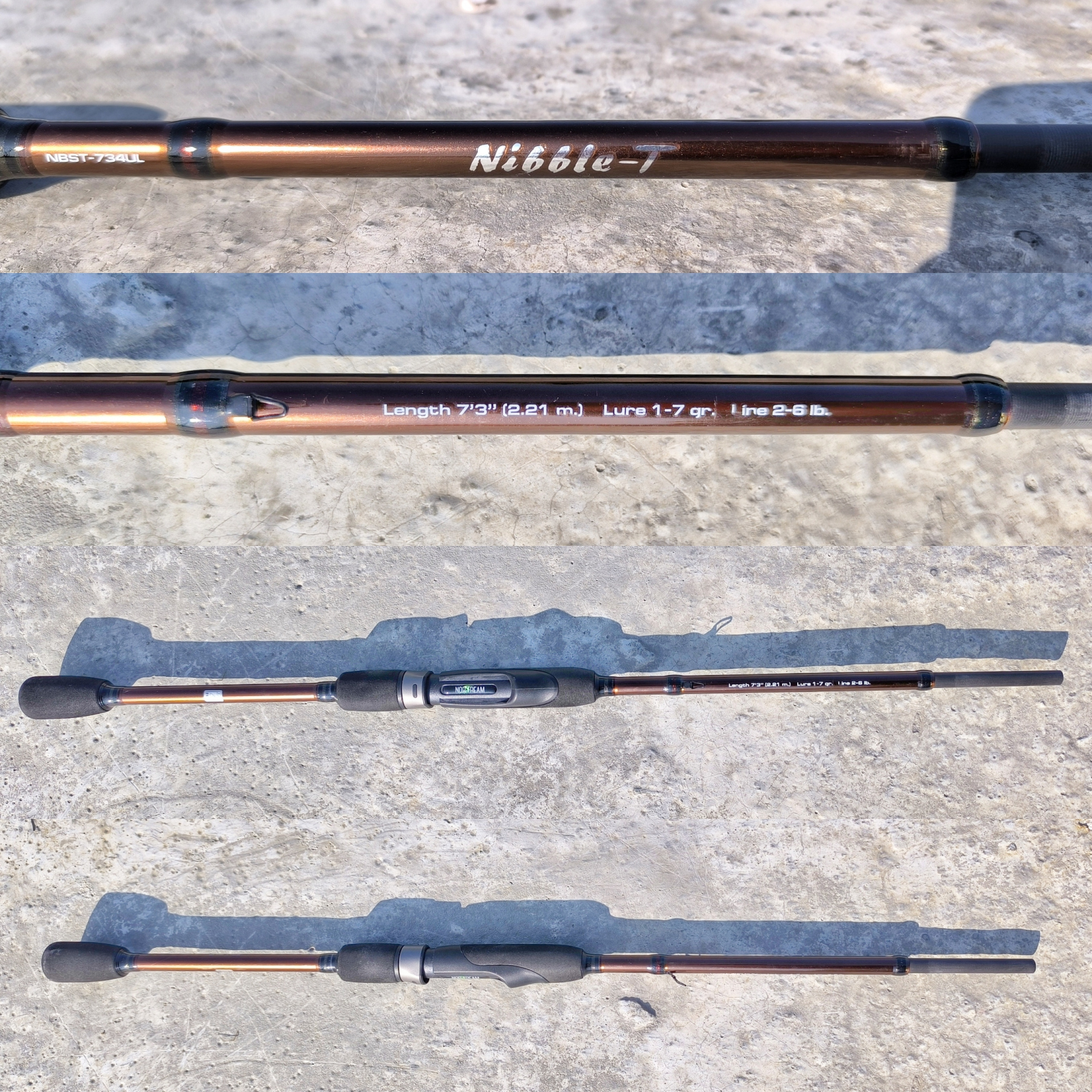 Когда я в первый раз собрал этот спиннинг, то был несколько удивлён - он показался мне излишне брутальным для своего теста. Однако это первое впечатление рассеялось при первом же тесте на воде. Бланк Ниббла-Т довольно живой, и отлично включается на всех стадиях - от заброса до проводки и вываживания. Nibble-T имеет средне - быстрый строй и бланк средней жёсткости. Еще одна особенность этого спиннинга - в тревел- версии у него более мягкая и упругая середина, чем у двухчастной модели в той же длине и тесте. Сделано так для того, чтобы добавить спиннингу той самой универсальности.