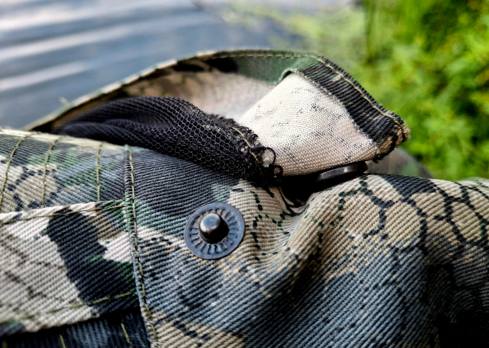 Что приятно, снять москитную сетку можно менее, чем за пол минуты. Крепится она к панаме на клёпках с двух сторон. Способ крепления удобный и быстрый, но дергать сетку я бы не рекомендовал. Кто хоть раз пользовался клепками, знает, насколько часто страдает ткань в районе их размещения.