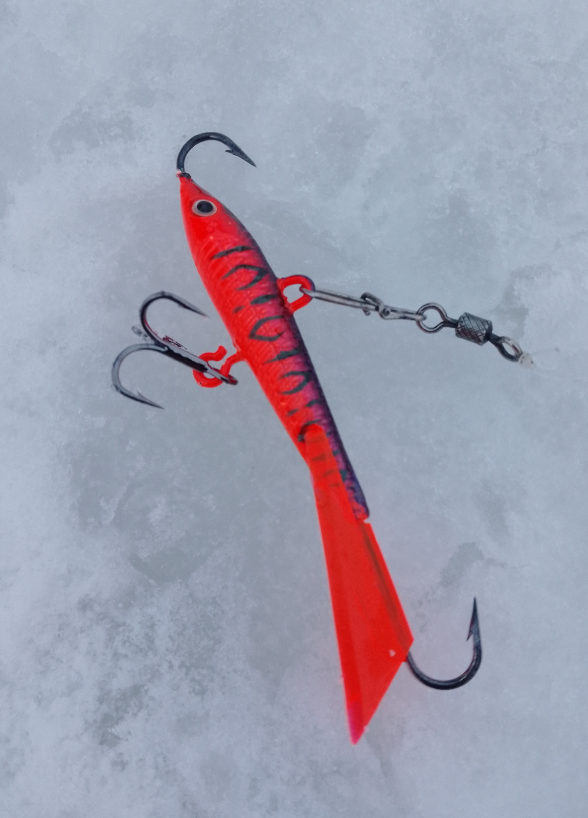 А это по факту означает, что этот балансир он будет хорош при работе на глубине, где нет вероятности встретиться с нижней кромкой льда. То есть, я говорю про свой опыт, на меляке я этот балансир не применяю, так ему нужен простор для полноценной и чёткой игры. Собственно, он работает у меня там, где и, в большей степени, обитает его целевая аудитория.