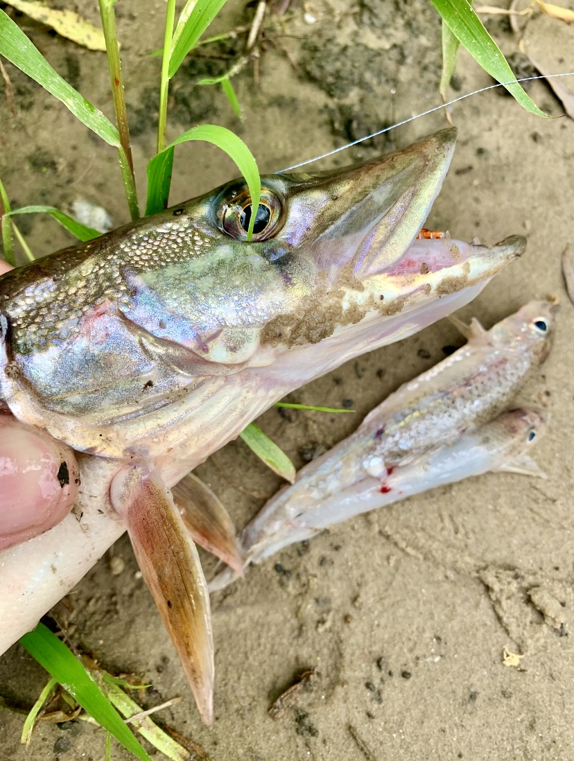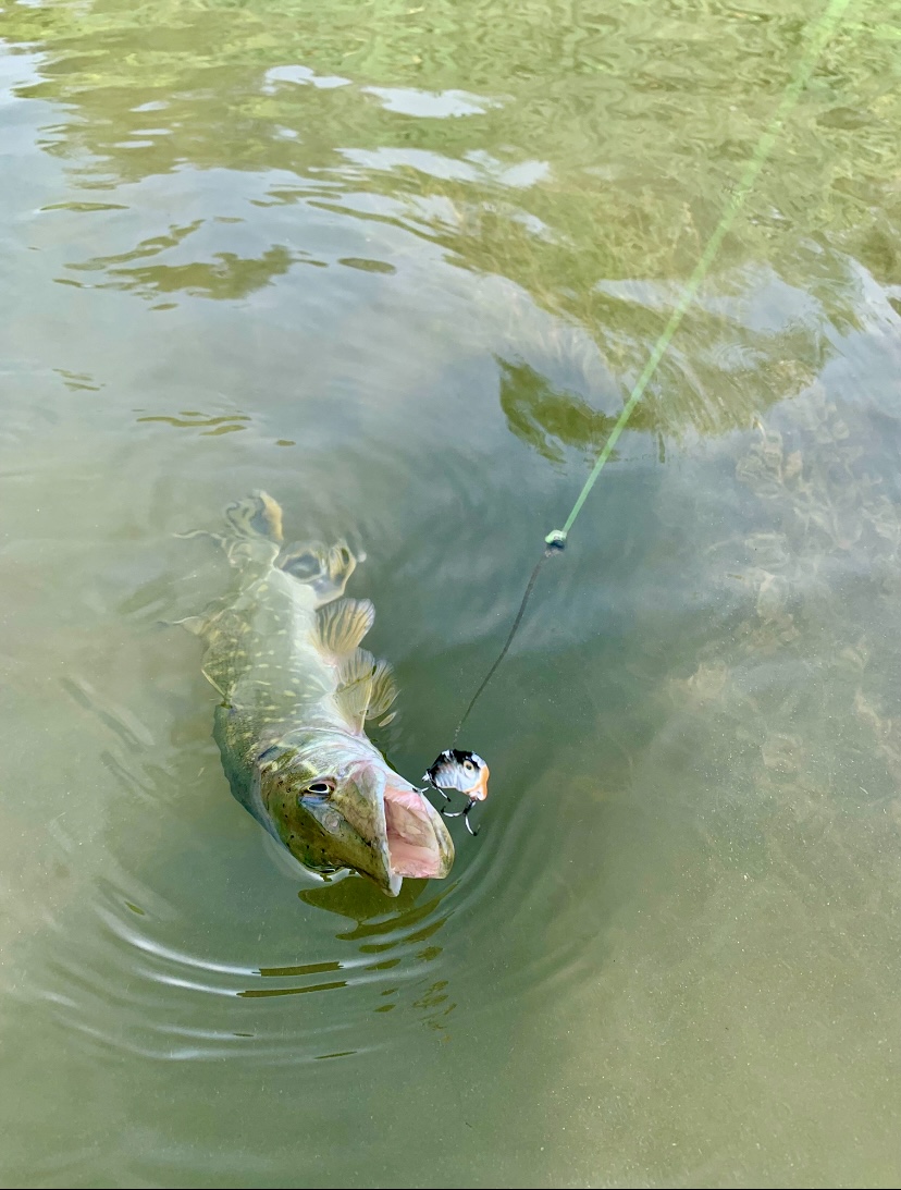 После заброса приманка быстро приводняется. Если дно чистое, то приманку можно использовать в качестве джиговой. То есть с опусканием на дно с дальнейшими подрывами и повторением цикла. Мне джиговый вариант не зашёл, хотя несколько рыбок поймал. То трава, то коряги, то камни. Кстати, если на крючок цепляешь даже небольшую травинку, блесна перестаёт играть, что сразу чувствуется по кончику удилища. Ещё сразу из ценных замечаний. Цикада периодически перехлёстывается за леску. Чтобы свести к минимуму перехлёсты, рекомендую пользоваться жёсткой тонкой струной.