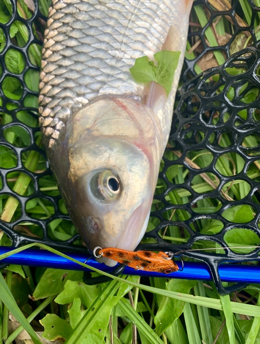 Возвращаюсь снова к проводке. Моей волшебной палочкой стала унылая равномерка. Чаще всего я бросаю приманку перпендикулярно берегу, даю ей опуститься на нужную глубину и в среднем темпе вращаю ручку катушки. При желании приманку можно провести под самой поверхностью. Приманка плохо работает при проводке по течению (только в очень быстром темпе) и хорошо себя показывает при проводке против течения. Ни одна бурлилка не способна сбить игру блесны Strike Pro Cyber Vibe и выкинуть её из рабочего горизонта проводки.