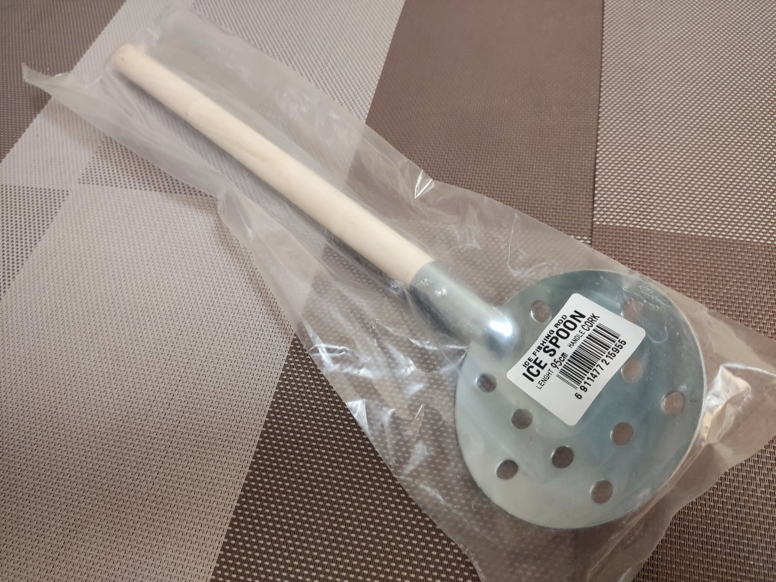 А что я там про ручку говорил? Да, мы имеет фактически черенок, как у лопаты, но миниатюрный, а если для шумовки, то вообще мощный, но в меру изящный, не толстый, не с наболдашником, как часто встречается у других производителей, просто удобный и легкий. Но почему я выбрал и мне был принципиален именно такой вариант ручки? Сейчас много разных вариантов, как пластмассовых, резиновых, титановых (вспомнил анекдот про два титановых шарика), так и с пробковыми, деревянными, пенопластовыми ручками. И в своем большинстве, они плавающие, а этот экземпляр сугубо тонущий. Минус? Может быть, но я никогда не понимал, как можно утопить в лунке термос, шумовку, телефон и все остальное, кто они, эти одаренные люди, Копперфильды, заставляющие предметы исчезать.