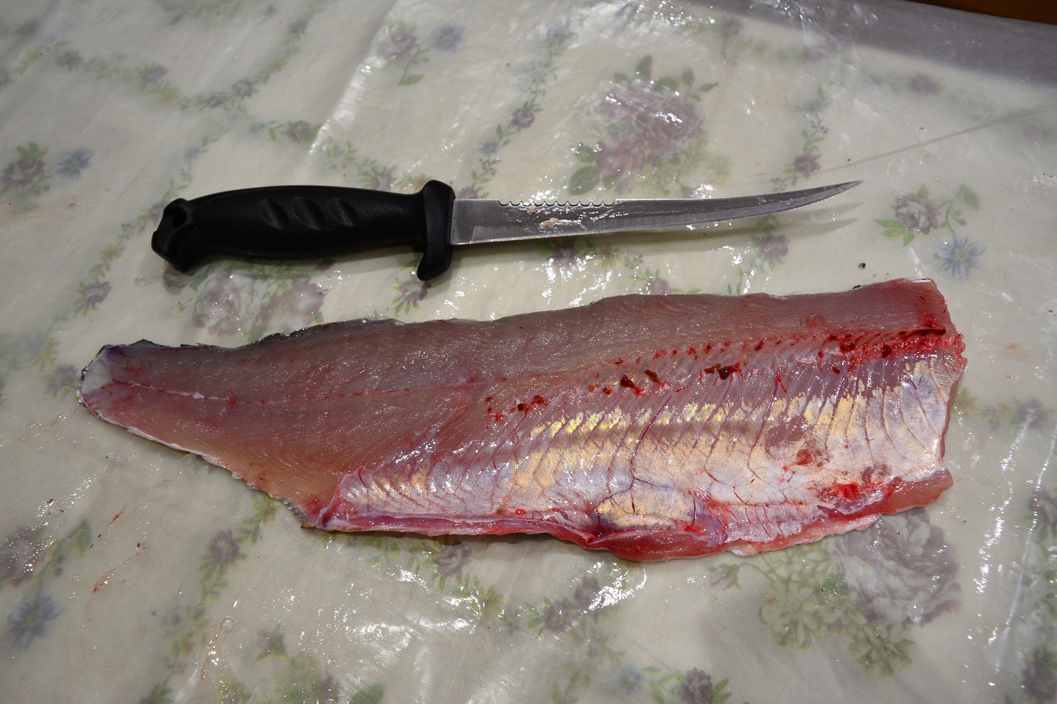 Я не самый опытный филейщик, так что не судите строго. И все же, буквально одним движением достаточно легко снимается пласт.