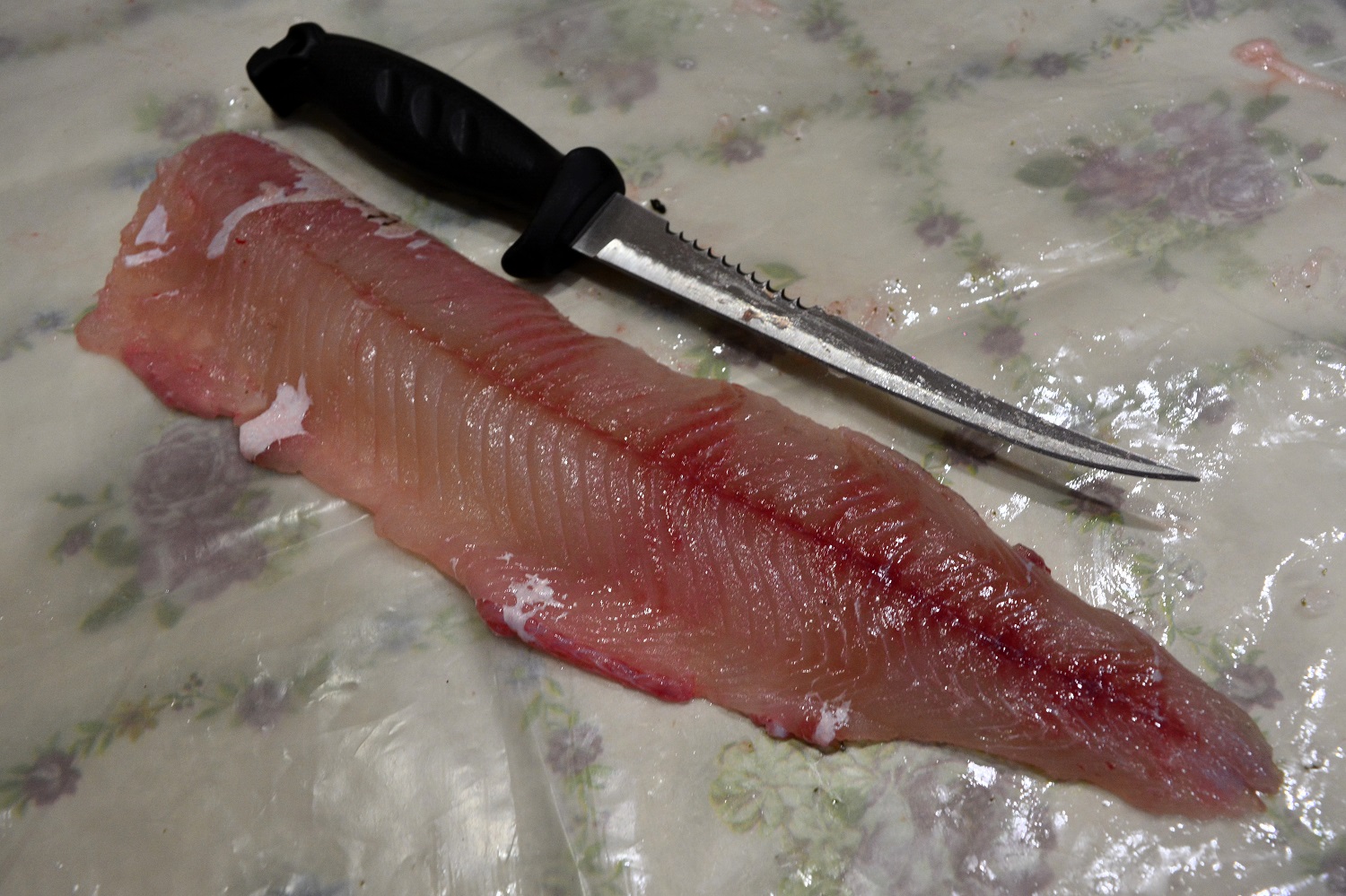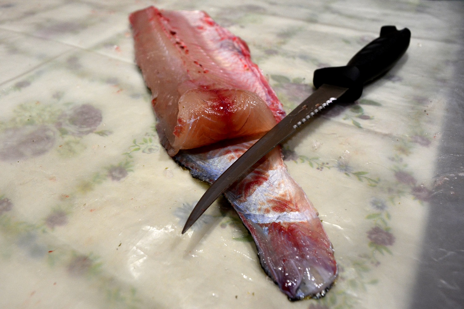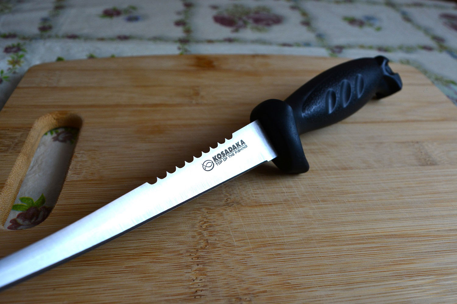 Лезвие Kosadaka N-F501 заточено хорошо. Всевозможные «бумажные» тесты нож проходит на ура. Но важнее, как нож себя показывает в разделке. Часть улова иногда попадает на стол, так что навык лишним не будет.