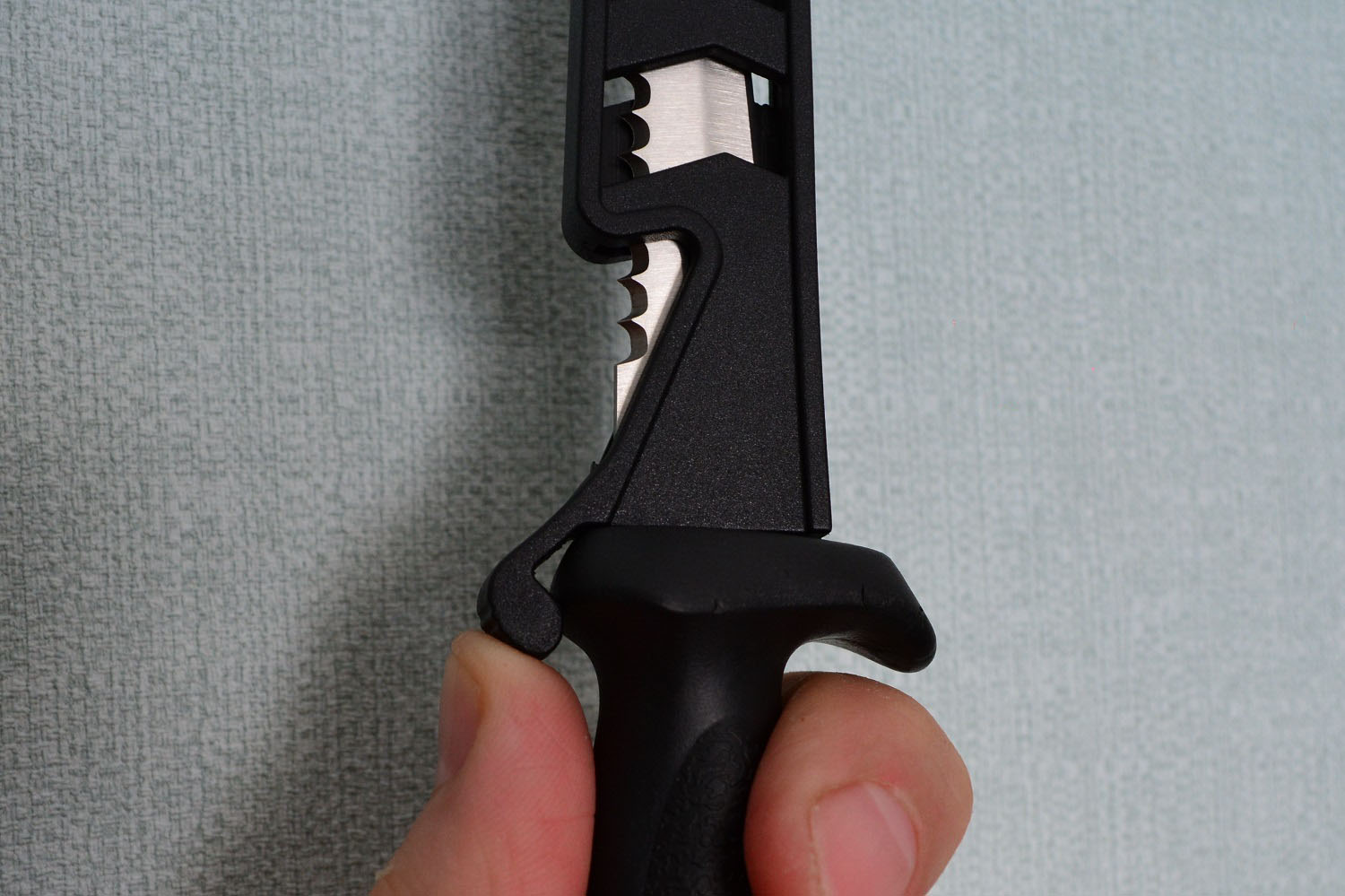 И на ноже они фиксируются хорошо с помощью специального зацепа.