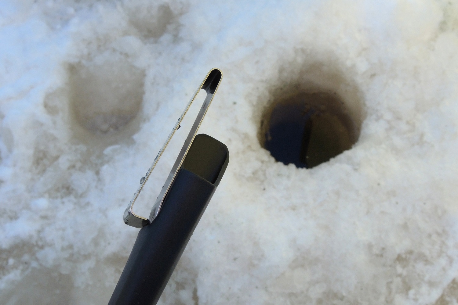 Итак, в каждом ноже есть какая-то особенность. Kosadaka N-FN16 заявлен как нож плавающий. Сразу скажу, что в первый раз мне пришла идея проверить это на рыбалке, опустив нож в лунку, глубина под которой была порядка пяти метров…