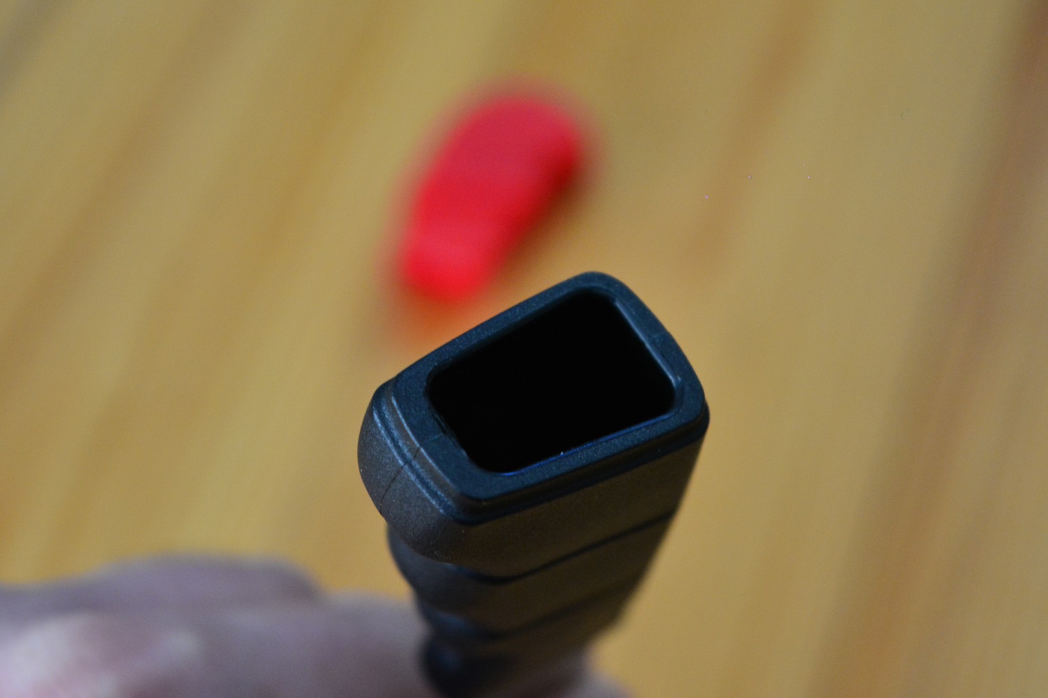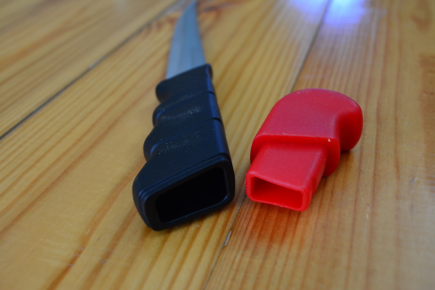 Рукоять ножа полая. Красный наконечник — это по сути пробка.