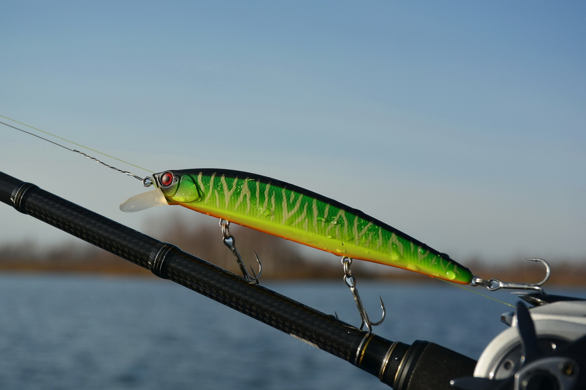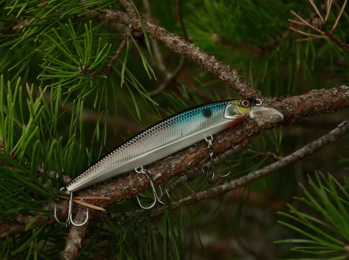 Коротко, практически без отдачи бьёшь кончиком по шнуру – он начинает крутиться на одном месте. Начинаешь дёргать шире и мягче с большей отдачей лески – он начинает совершать галсы и делать широкие развороты. И при этом обладает основным набором игровых возможностей, свойственных воблерам минноу. То есть его можно положить на бок, можно заставить закинуть вверх брюшко, и т. д. И, конечно же, он обладает довольно продолжительными (визуально даже более долгими, чем у 110-й модели) остаточными колебаниями.