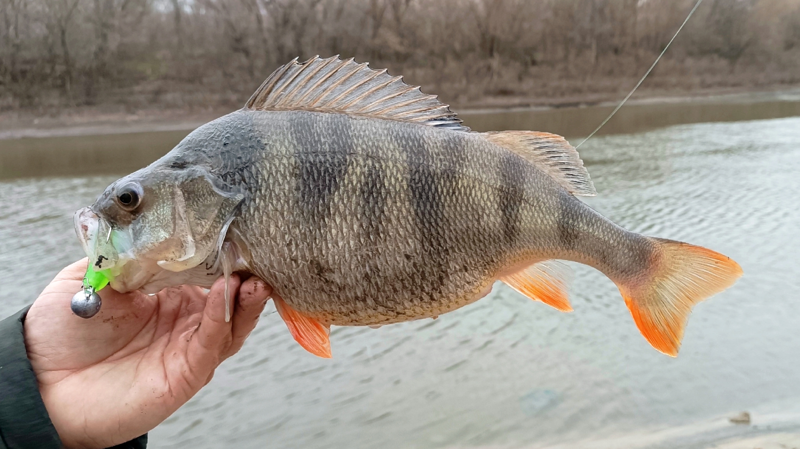 По окуню не всё так однозначно. При ловле мелкого "городского" окуня я использую другие приманки, хоть и эта ловит. А вот крупные размеры отлично работают по достойному окуню там где он есть. Например на этом фото мой "арбузный" трофей 2025-го года.