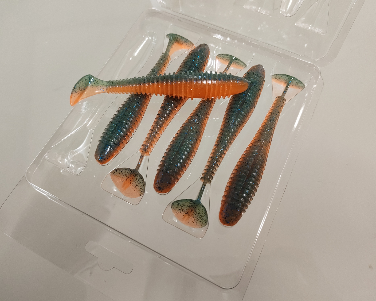 Импакты обладают ребристым телом и довольно широким хвостом, который задает этому виброхвосту его поистине уникальную игру. Меня прежде всего именно игровые способности Swing Impact Fat привлекли, далеко не каждый виброхвост, да еще со столь массивным телом, может похвастаться такой живой игрой. А главное, что как бы его не оснастить, он всегда будет играть, неважно, вертикально погружаясь, или располагаясь в горизонтальной плоскости. Лично для меня важно более всего второе - игра горизонтально расположенной приманки, которая плавно опускается вниз, при этом не только повиливая хвостиком, но и раскачиваясь и даже переваливаясь с боку на бок, всем своим могучим упитанным корпусом.