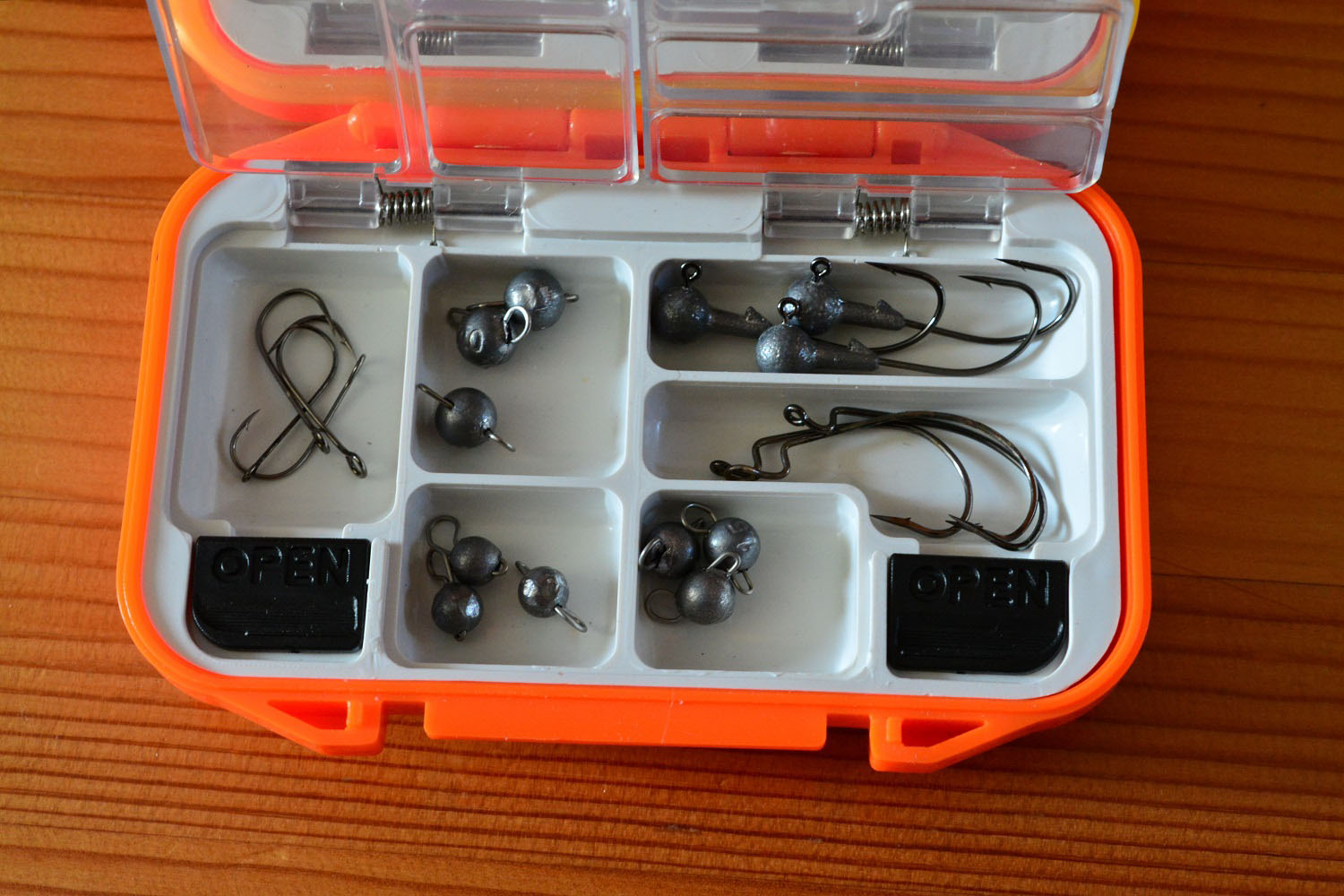 Можно собрать набор для аксессуаров для микроджига или поводковой оснастки. Также можно просто хранить в ней карабинчики, застежки, вертлюжки или запасные крючки.