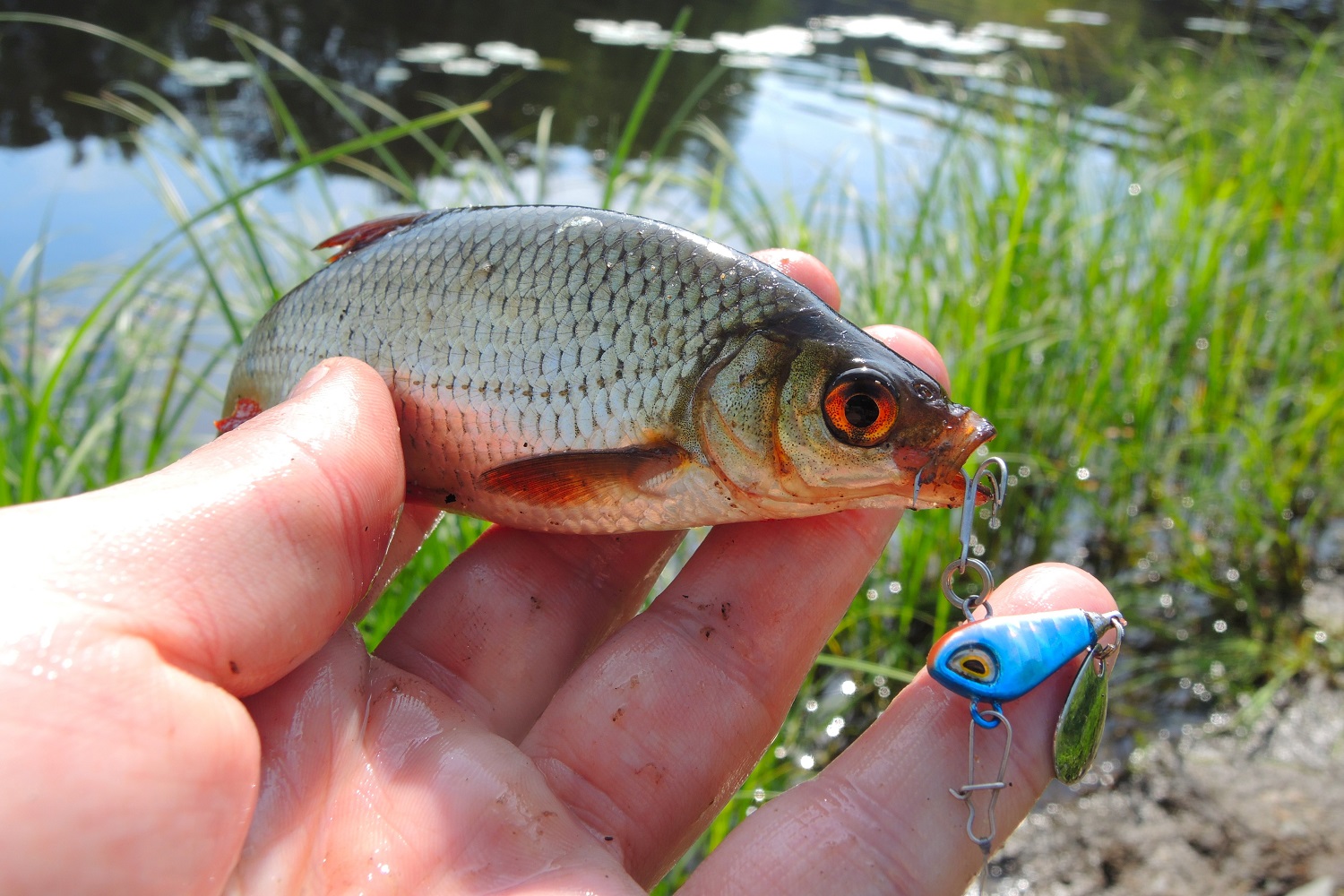 Или вот на озере, где есть и глубина, и большие «чистые» участки, на Kosadaka Fish Darts FS3 попадались мне даже небольшие красноперки.