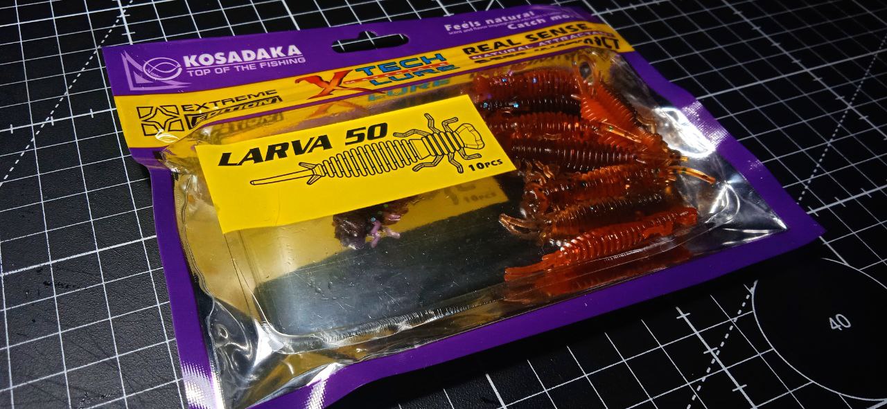 Через какое-то время обнаружил, что у китайцев уже вышли неплохие копии, и заказал себе небольшую партию с запасом. Кроме неприятного запаха и жестковатого силикона, недостатков я больше не нашёл. Приманки служили верой и правдой, пока не начали потихоньку заканчиваться. А к тому моменту уже хорошо знакомая мне фирма Kosadaka начала массово клепать новинки, в числе которых я обнаружил и давно знакомую Ларву. Цвета в каталоге прикольные, есть даже микс из 5 доступных исполнений, плюс цена довольно демократичная. Недолго думая, заказал огромную партию резины от Kosadaka. Решил таки попробовать любопытные новинки, а заодно и поделиться мнением с читателями.