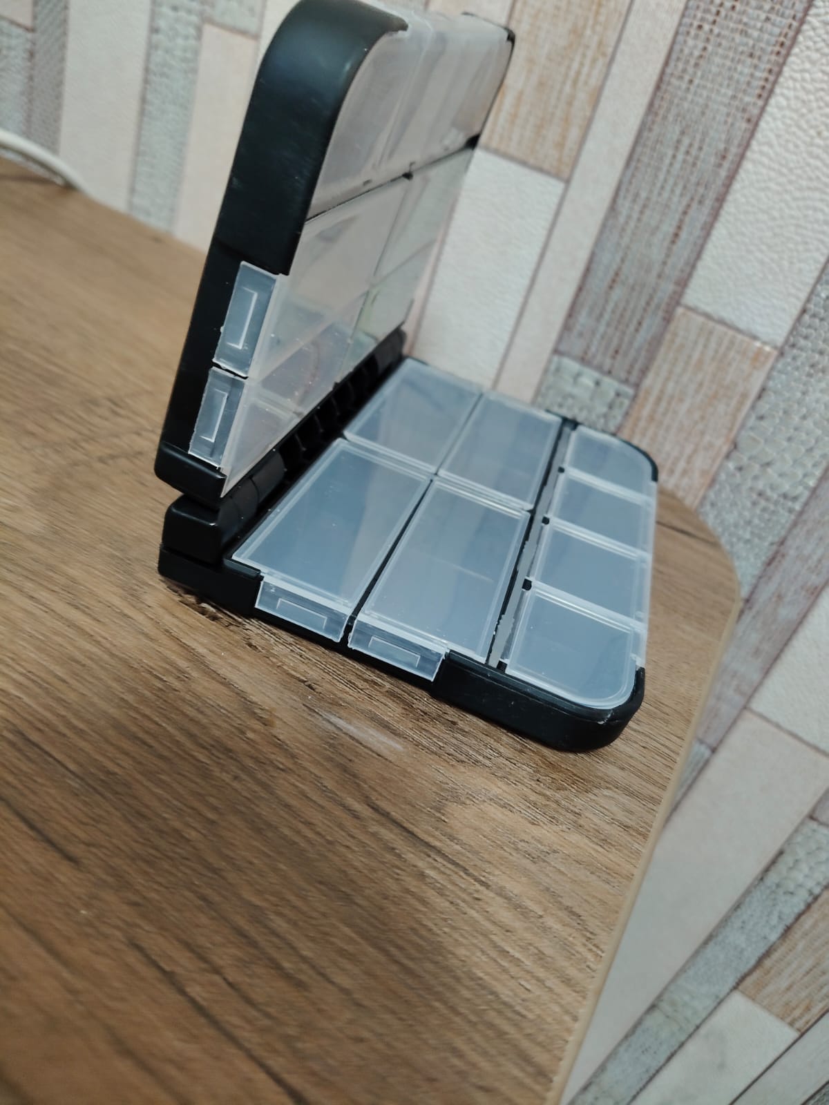 Давайте теперь непосредственно перейдем к рассмотрению самой коробки. Сама по себе Kosadaka TB-M11 Accessory Box Premium не отличается выдающимися габаритами. Честно говоря, мои замеры 130мм*92мм*32мм слегка отличаются от заявленных производителем 132мм*97мм*32мм. Но это вообще не критично и ни на чем не отражается. Но тут стоит сразу отметить, что данная коробушка раскладная. И в разложенном виде ее ширина уже больше 180мм. При этом, каждая из внутренних сторон зеркально оснащена различного рода по величине отсеками. Итак, на каждой стороне находится по 8 отсеков – 4 из которых побольше размером, а 4 размером прям сильно поменьше. Но принимая во внимание незначительную толщину коробки в сложенном виде (32 мм), то в разложенном состоянии, учитывая толщину стенок коробки рабочего пространства в отсеке вы получаете чуть больше сантиметра. Мало? Ну смотря для чего – для тяжелых грузов и больших приманок, мало. Для моих нужд более чем достаточно.