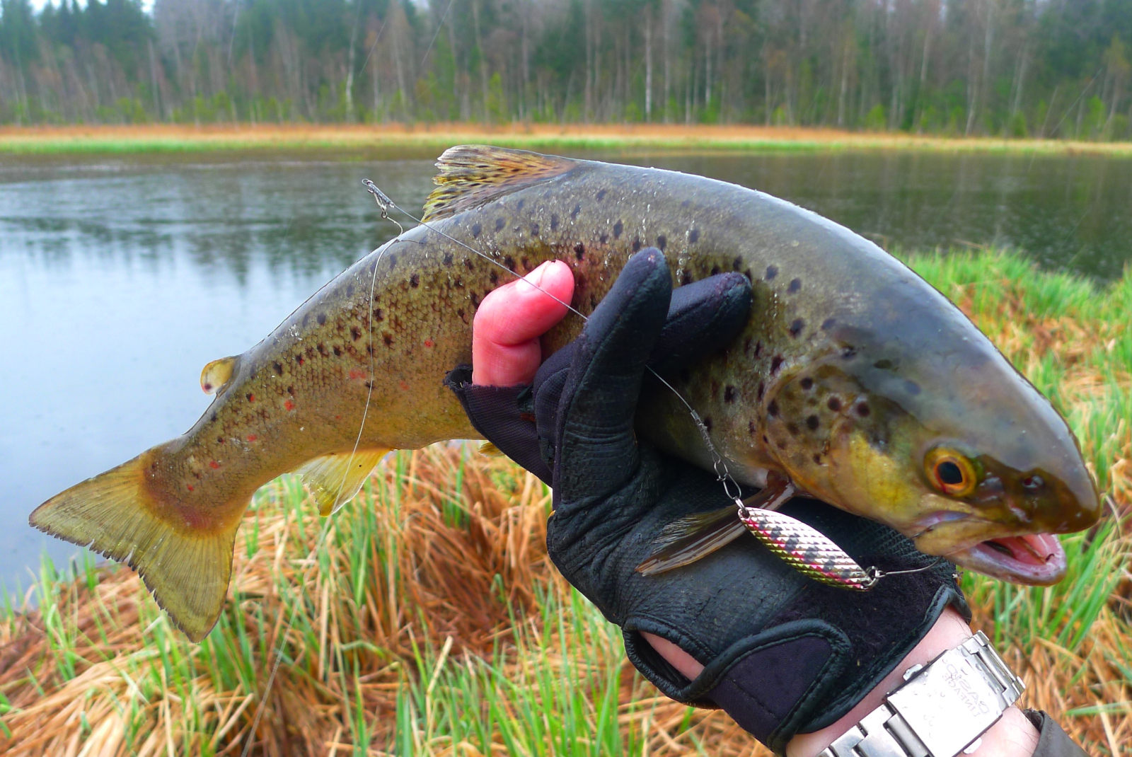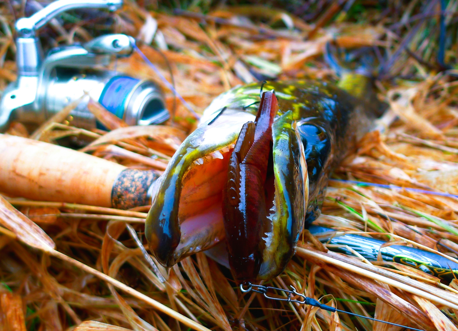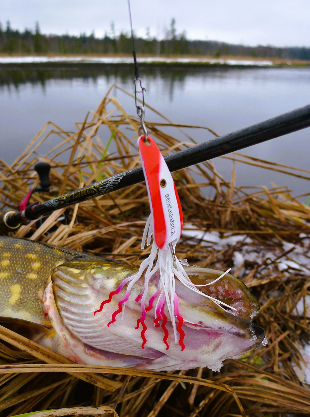С «инструкцией по обращению» разобрались, теперь о том, почему я так люблю именно титановые поводки. Ведь дело не только в их свойствах долго сохранять изначальную форму. Лично для меня никогда не составляло труда накрутить дюжину-другую поводков-скруток из хорошей нержавейки. Но дело в том, что кроме свойств к сопротивлению изгибам, для меня весьма важен еще и вес поводка, и вовсе не потому, что я стремлюсь во что бы то ни стало сохранить степень плавучести японских воблеров, а больше всего потому, что лично мне необходимы максимально легкие поводки для ловли на компактные приманки. И если быть более точным и обстоятельным, то именно титановыми поводками я оснащаю свои лососевые снасти. Практически по всем своим фото, я могу сказать, что даже если на них вместе с титановым поводком позирует щука, то это значит, что поймана она во время ловли лососевых, поскольку на чисто щучьей охоте я пользуюсь стальными поводками из струны. И даже если щука фигурирует на фото с чисто щучьей приманкой, но на титановом поводке, то значит она меня достала на лососевой реке своими выходками и была специально изловлена и наказана, дабы неповадно ей было впредь в этих местах распугивать благородных конопатых рыб.
