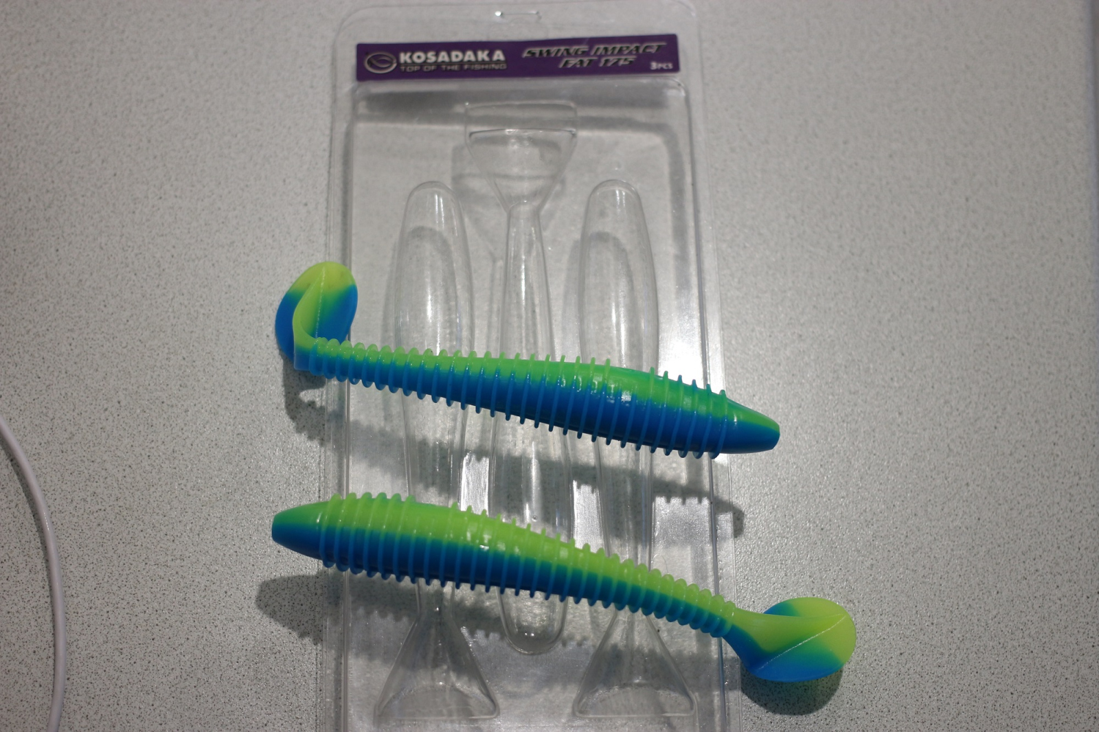 Упакован Kosadaka Wave Impact FAT в прозрачный блистер. В пачке три штуки. Десять расцветок, среди них есть как натуральные, так и кислотные, светлые и тёмные. Хотел бы предложить производителю сделать вариант с тремя разными, по цвету, приманками в одном блистере. Так можно испытать сразу несколько вариантов и остановиться на наиболее, с точки зрения рыболова, уловистом. Да и просто по кайфу, когда при открытии коробки, начинает рябить в глазах)