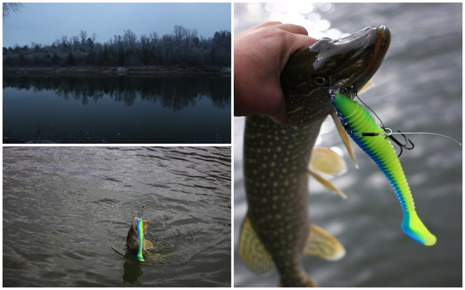 Именно Kosadaka Wave Impact FAT принадлежит мой рекорд по самой поздней ББ-шной щуке — 30 ноября. В это время даже просто рыболовов у нас немного, а уж на крупные приманки вообще никто не ловит. Мне же стало интересно — сможет ли ББ, проводимые пелагически без пауз, подвигнуть щуку на атаку.
