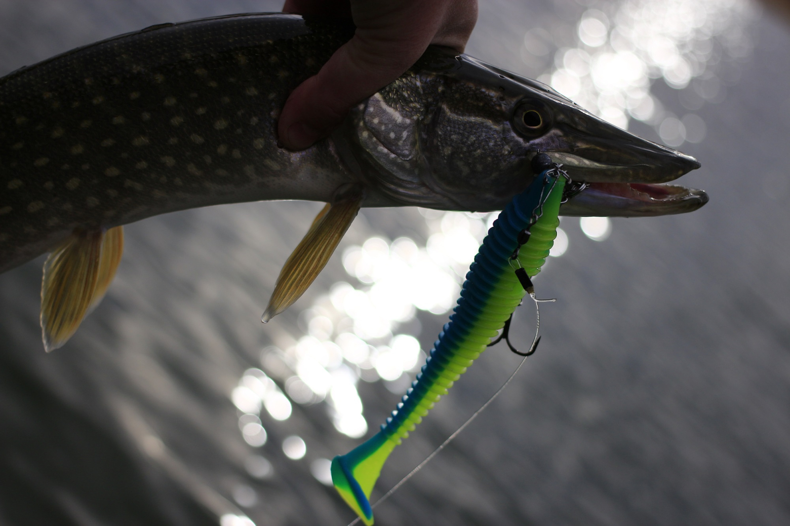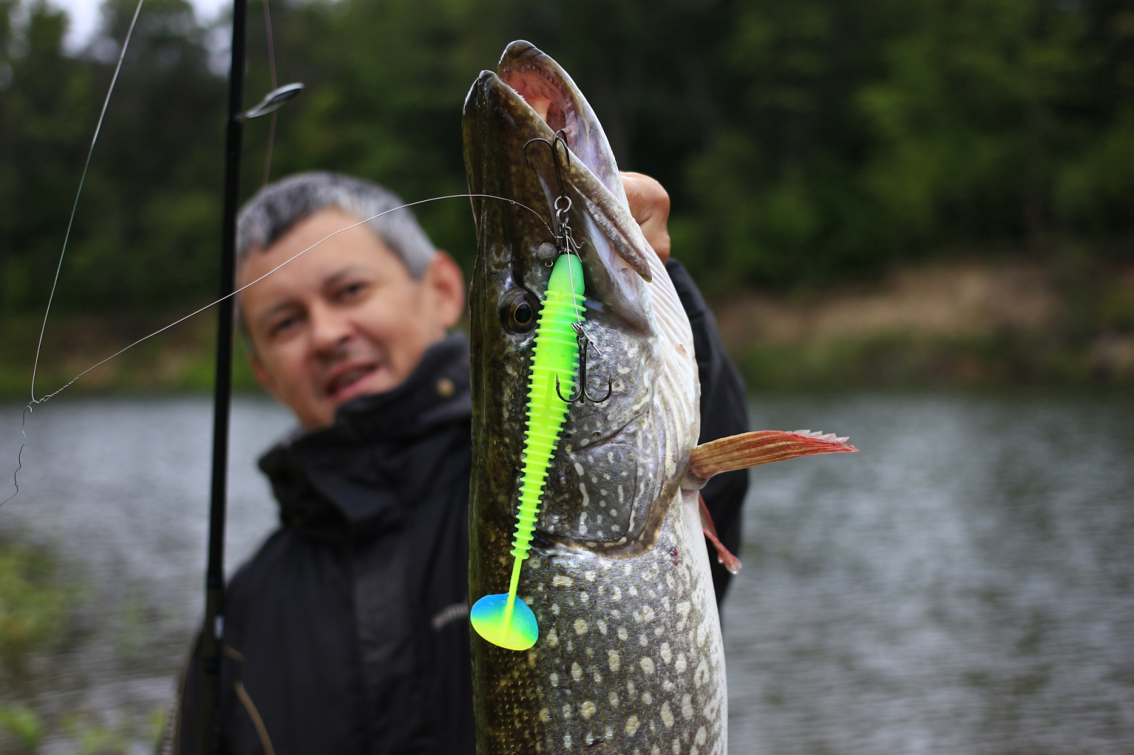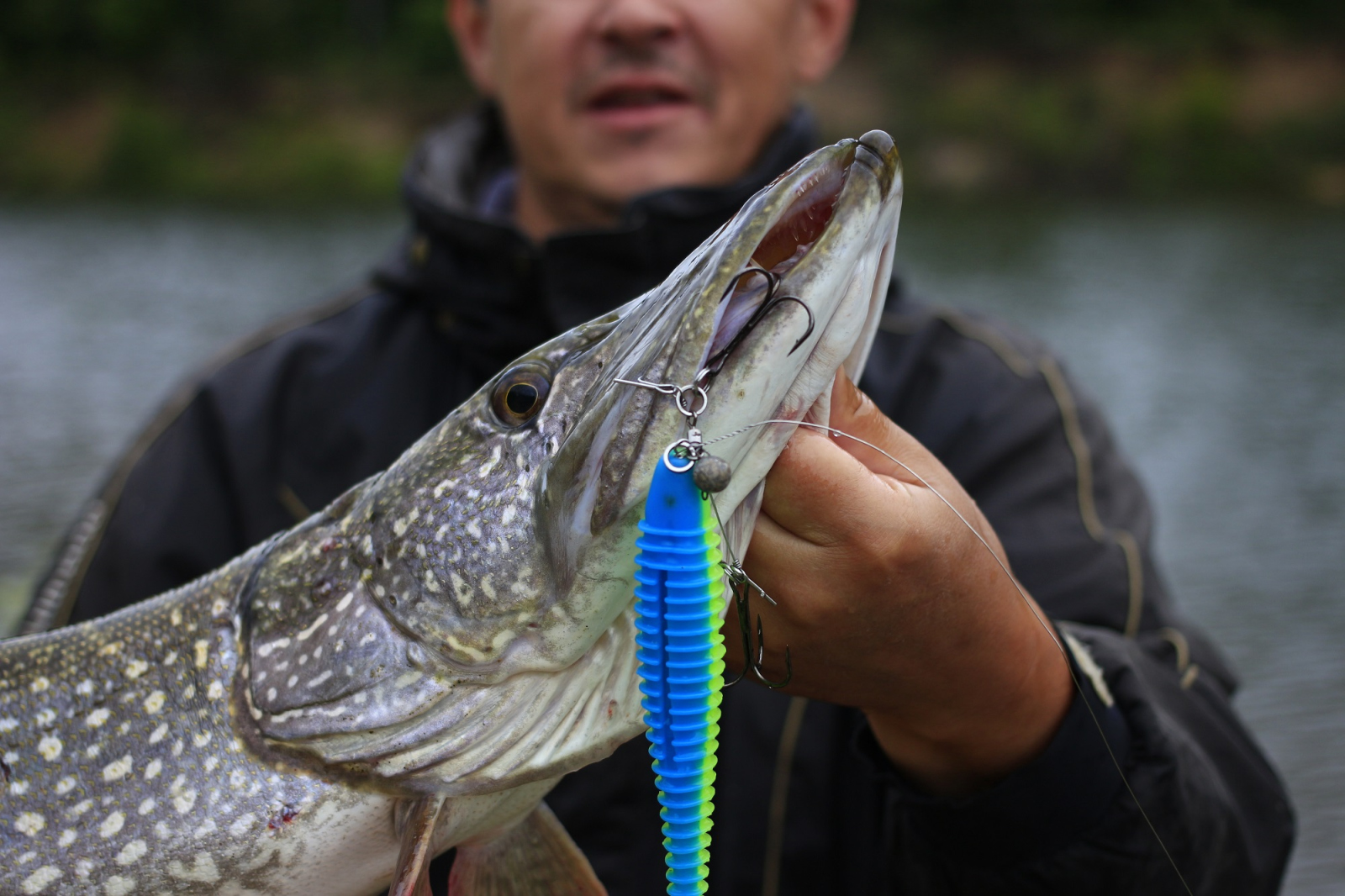 Из рыб, основной добычей на моей реке является щука. Судак тоже не против отведать толстую рыбку, но это в основном происходит поздней осенью, либо немного ниже тех мест, где я ловлю чаще всего. Ловля чаще пелагическая, в большинстве случаев над завалами и рже по бровкам и поливам. Учитывая силу течения, направление проводки и толщину шнура, подбираем груз, стараясь чтобы виброхвост прошёл как можно ближе к корягам. Активная игра хвоста не оставляет равнодушной даже позднеосеннюю щуку.